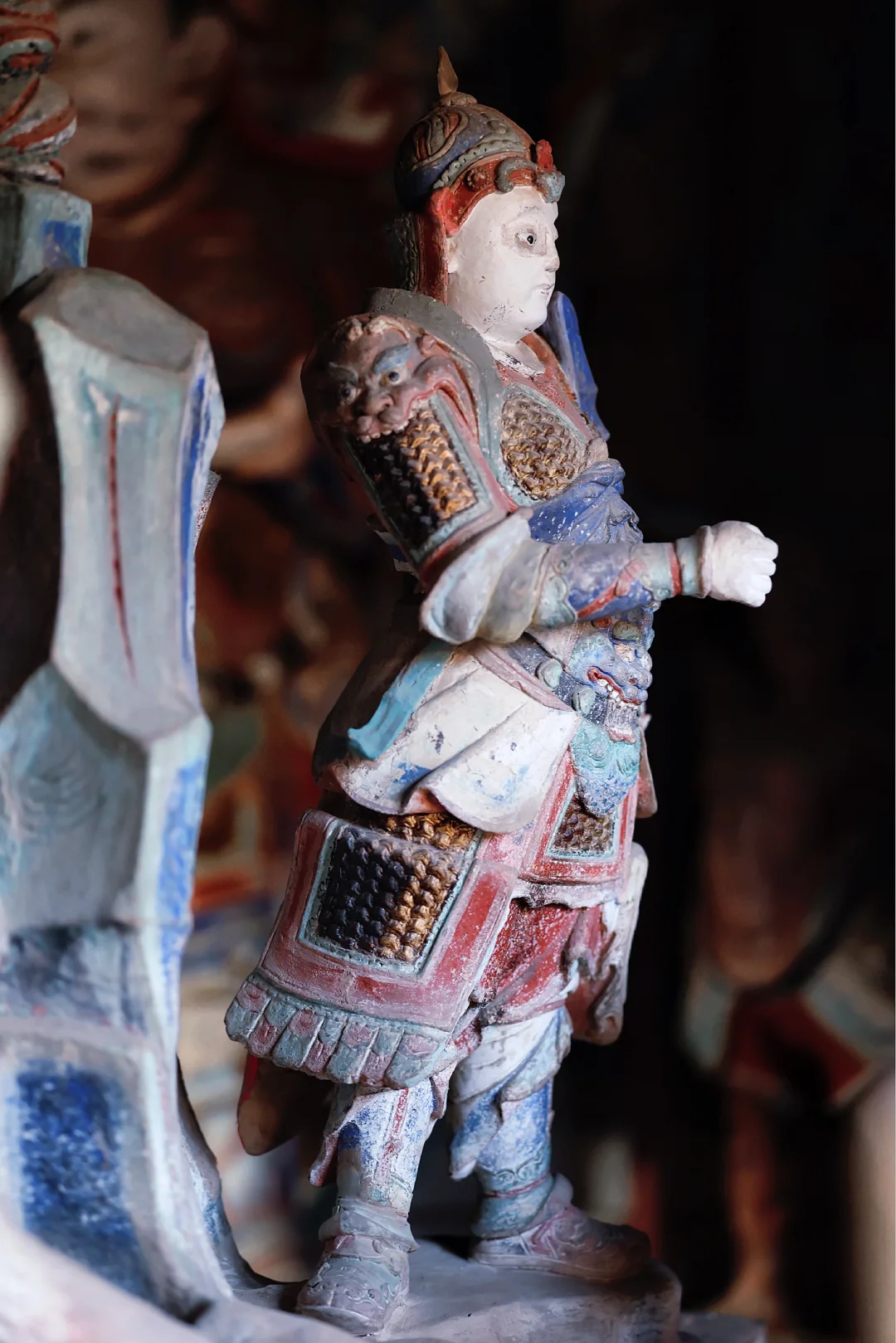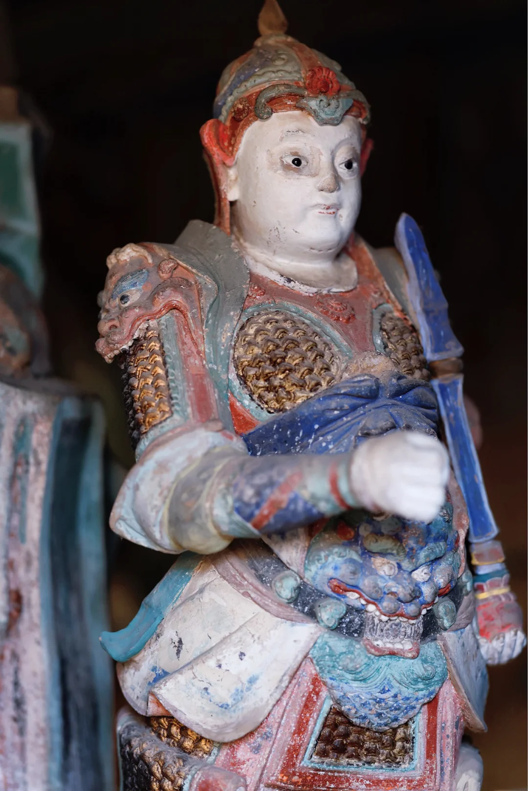 在繁峙三圣寺地藏殿倒坐观音旁 一眼就被萌到! 当韦驮当这么可爱合适吗! 看起来像是上班上太久了 一整个黑眼圈 还要强打精神[可怜R] 📍位置:山西省忻州市繁峙县砂河镇西沿口村 ✔️级别:国保第六批 ▪️路线:与岩山寺/公主寺成繁峙三寺参观路线 🚗交通:自驾或包车 🎫门票:无(需刷身份证进入)