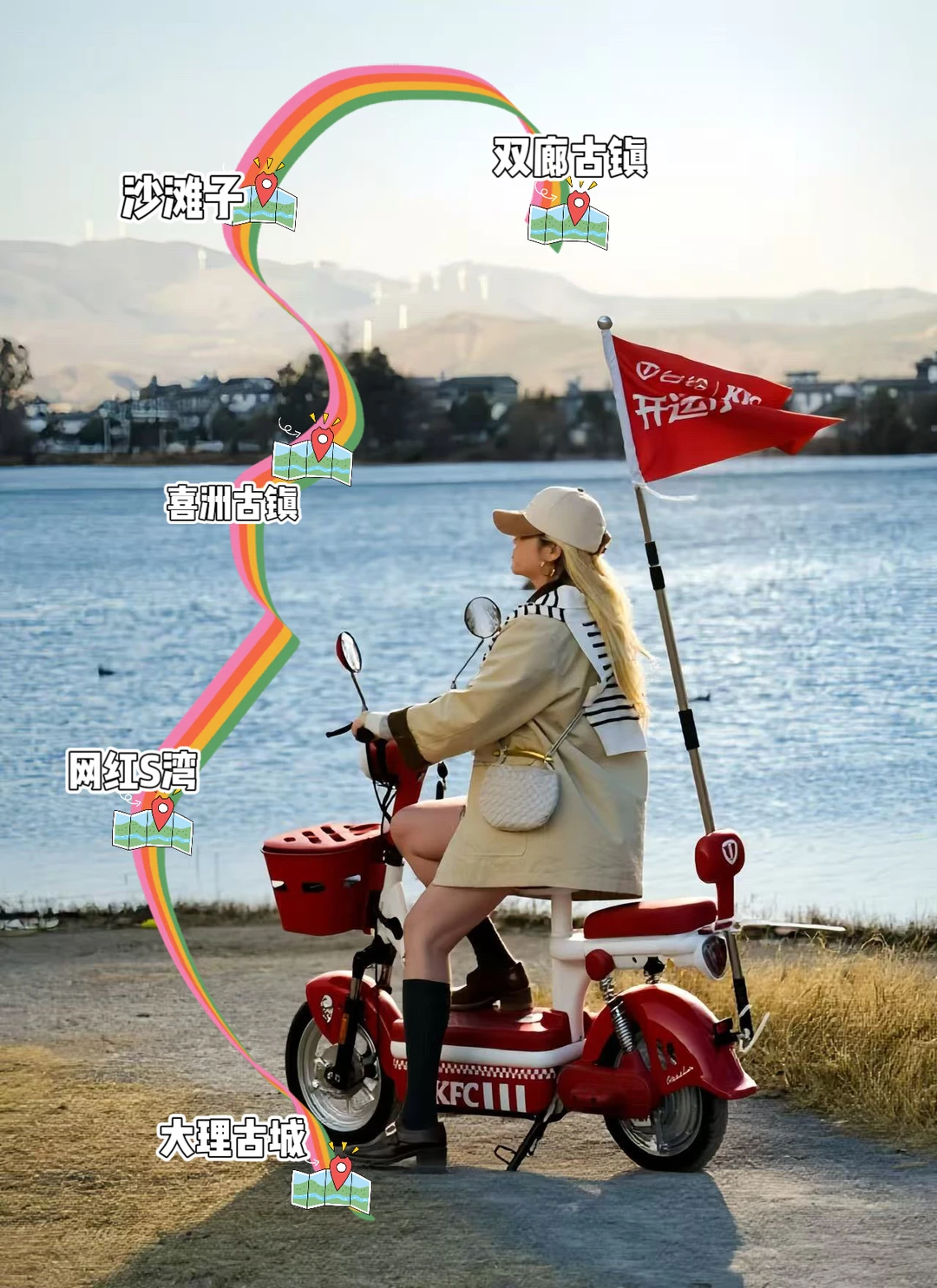 大理旅游攻略大理假期去哪儿大理拍照台铃长续航电动车台铃开运小红车肯德基电动车大吉大利台铃年新年开红运吃鸡赢台铃大理骑行