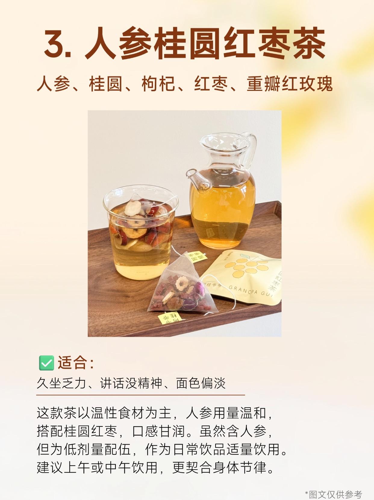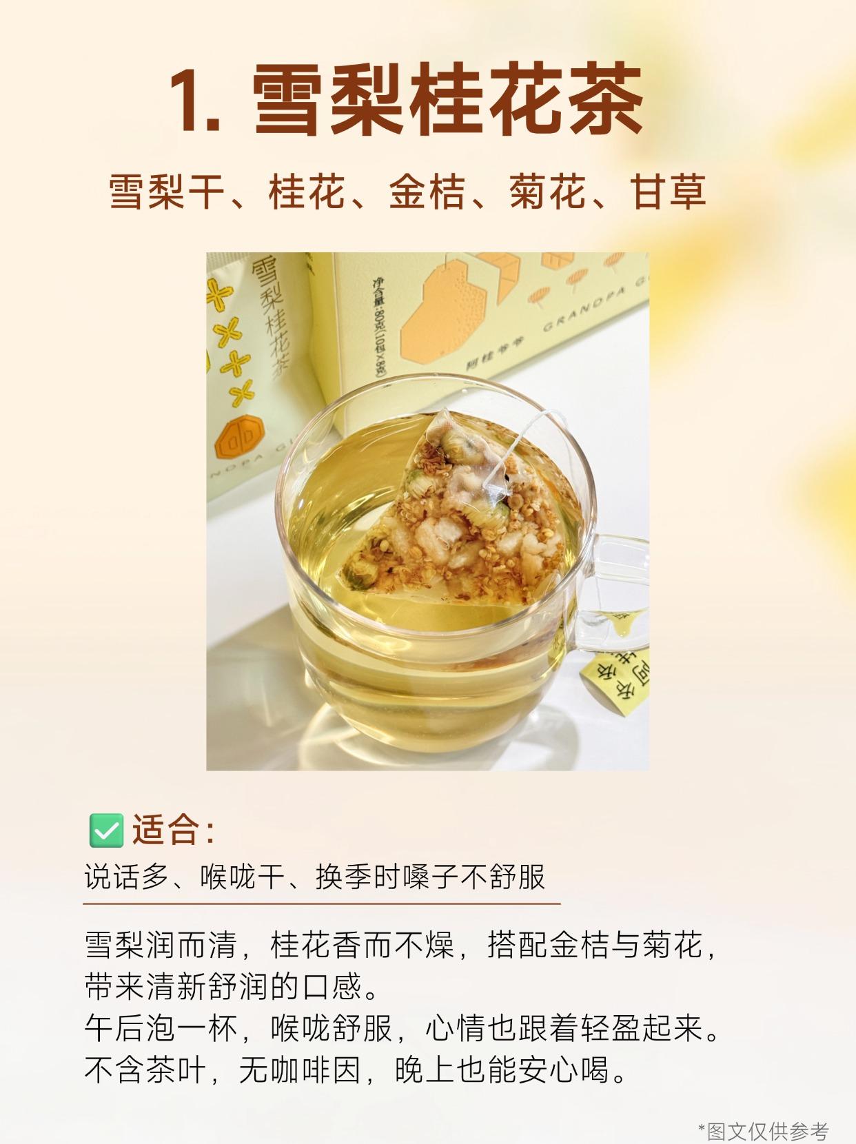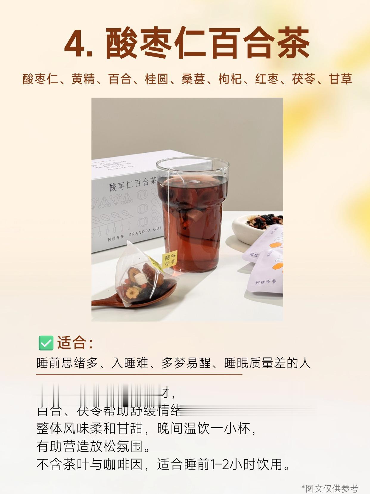怕喝茶睡不着,可以试试这4款食物养生茶。很多小伙伴一到下午就不敢碰茶 怕心跳加快、晚上翻来覆去睡不着…… 其实,不是所有“茶”都含咖啡因! 我们日常说的“养生茶”,很多是用药食同源食材搭配而成的茶饮, 不含茶叶、不刺激神经,温和适口, 白天喝提神舒缓,晚上喝也不影响睡眠节奏。 如果你也担心喝茶失眠, 不妨试试这4款适合全天饮用的食物养生茶👇 1、雪梨桂花茶 2、胖大海橘红茶 3、人参桂圆红枣茶 4、酸枣仁百合茶 -