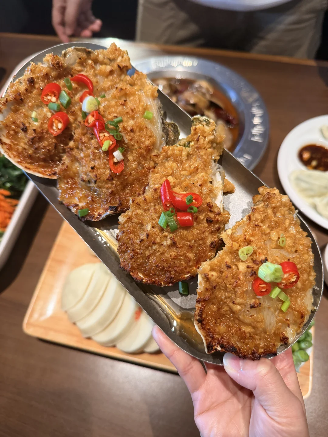 ❸蒜茸烤乳扇生蚝🦪!跟外面小摊吃到的烤生蚝完全不一样!都是有巴掌大的乳山生蚝铺满蒜蓉粉丝现烤出炉,一定趁热吃!蒜蓉很香,生蚝香甜,回味无穷!