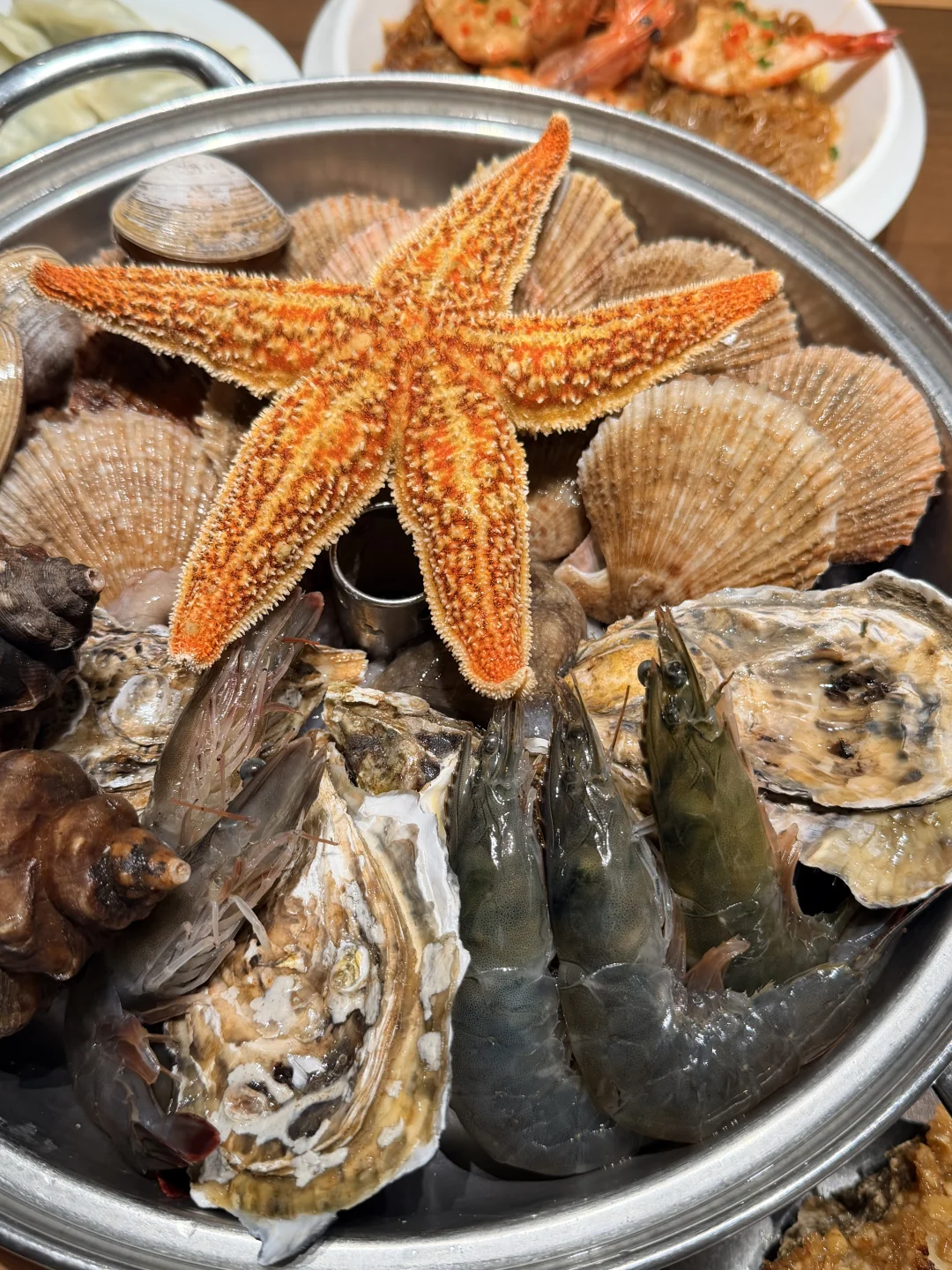 ❹鲜活海鲜蒸气锅!适合爱吃多样海鲜的姐妹!里面有7种时令鲜活海鲜,海星、鱿鱼、大虾…都是现捞现蒸,新鲜都能看见,口感也非常鲜甜!