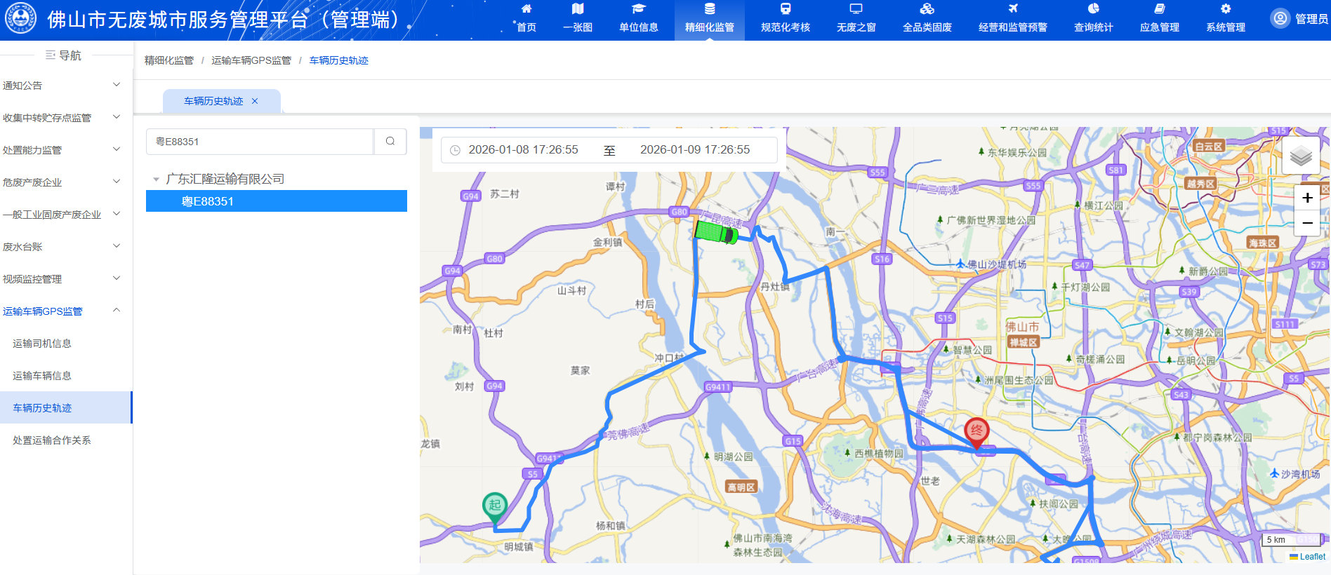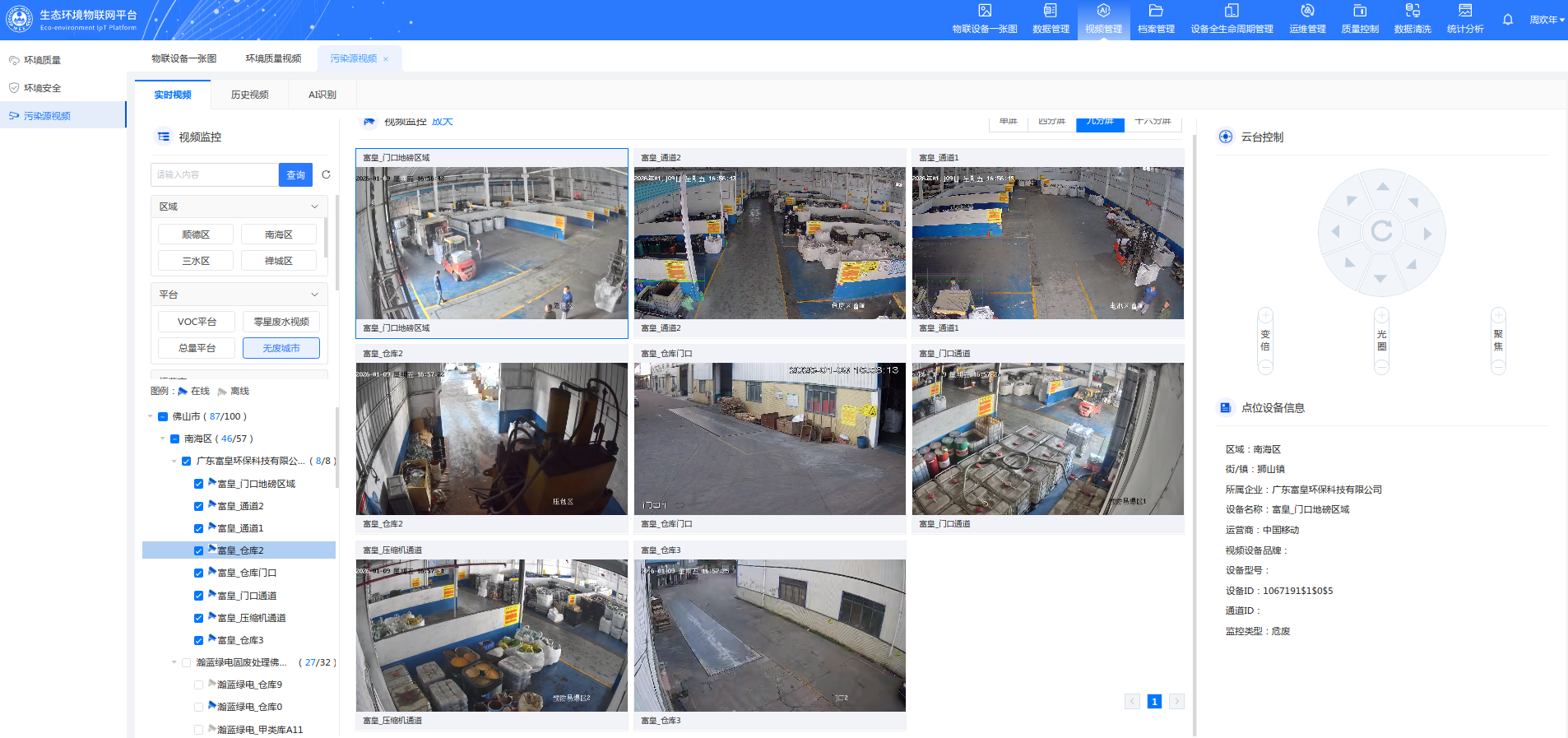 这仅是佛山市“智慧天网”的一角。如今,佛山市28家危废经营单位已100%安装视频监控并接入物联网平台,1800辆危废运输车辆实现全程轨迹追踪,形成从经营场所到运输过程的全时段、全覆盖监管闭环。