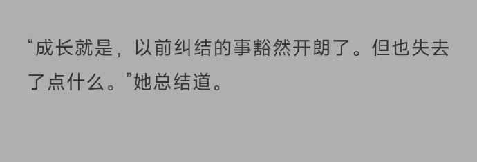 宋雨琦觉得长大是悲伤的事宋雨琦谈成长 宋雨琦受访谈及年龄,她说:“2026年马上要27岁了。”“有人觉得长大是懂事,但我有时候觉得长大是挺悲伤的事。(看旧照时)那时候为什么这么天真无邪,现在却做不到了。”“我也不是觉得这种变化不好,只是意识到自己的人生就是不断向前的,会被推着做出一些改变。当然,我长大了,变得更好了,就是偶尔会有一些我好像不是当初的那个我的小小感伤。”“成长就是,以前纠结的事豁然开朗了。但也失去了点什么。”