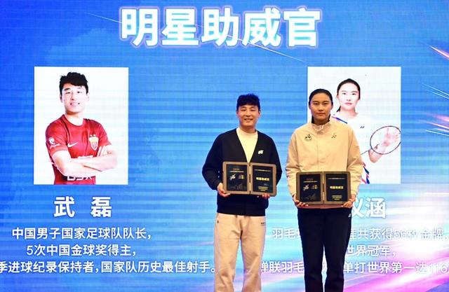 羽毛球世界冠军王仪涵、上海海港足球队前锋武磊获颁“2026上海城市业余联赛/上海大众体育节明星助威官”纪念牌