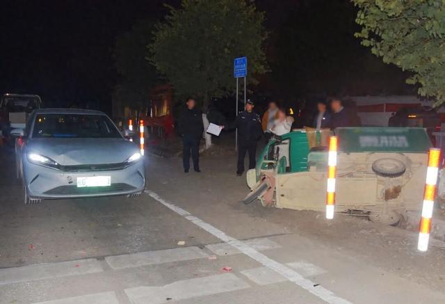 当日16时53分许,来宾市公安局交通管理支队兴宾二大队接到报警后,迅速赶赴现场处置。现场发现,三轮车驾驶人谭某受伤,电动三轮车被撞至路边,损坏严重,小型轿车车头也因撞击出现明显损毁。