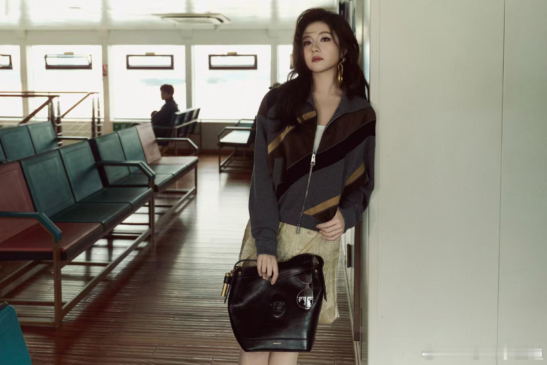 李兰迪 耳环消失术 李兰迪的颜值让耳环成背景板!拼接夹克配短裙又美又飒,靠墙抬眸有破碎感,注视远方含温柔,镜头怼脸只看到她的建模脸,心动~