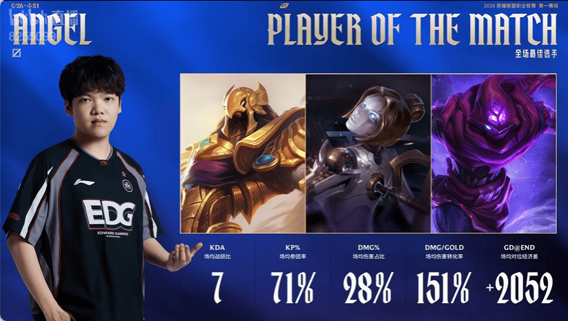 Angel操刀沙皇,发条,玛尔扎哈拿到EDG对阵NIP的全场MVP