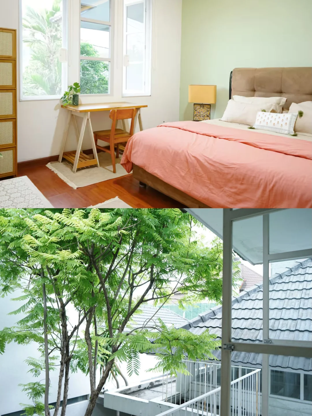 -房间里的窗户很大,视野很好,早上醒来就能看到满眼绿色