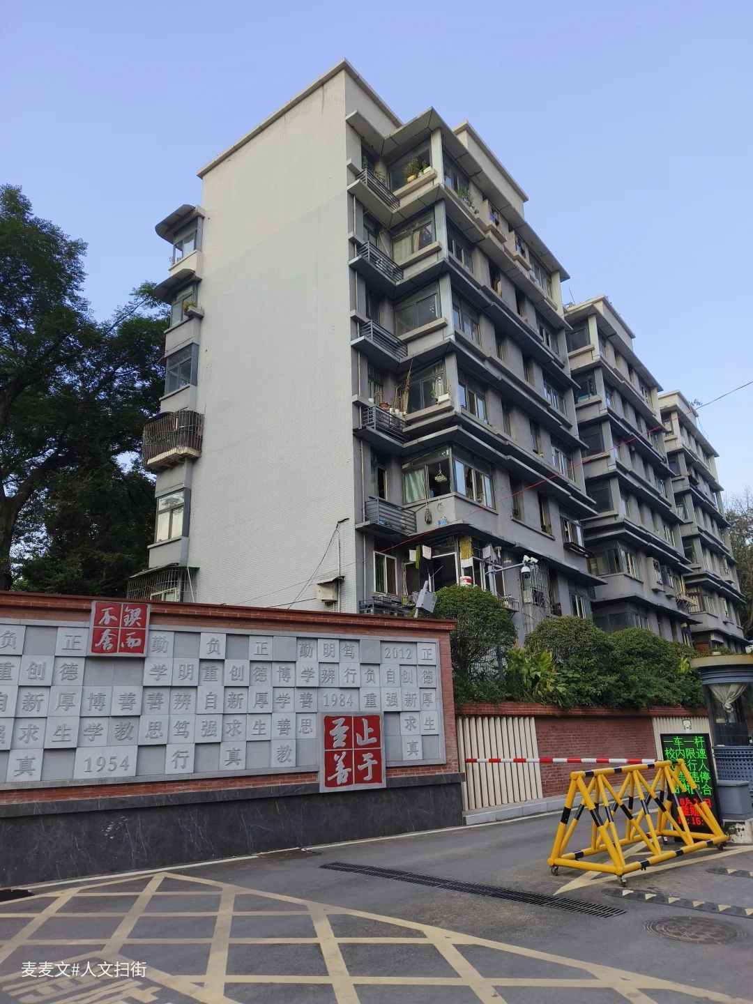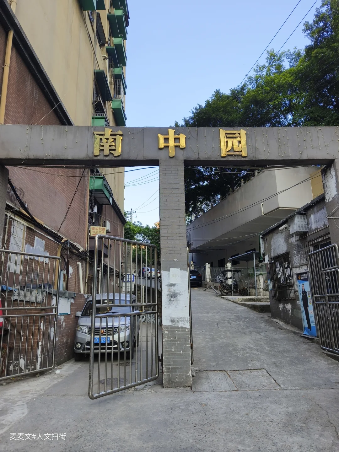 南中园,位于重庆市南岸区海棠溪街道学府路社区学府大道13号,紧邻重庆第二师范学院。走进这个千禧年竣工的老小区,时光仿佛慢了下来。斑驳的墙皮、爬满绿植的老墙,都是岁月的痕迹。楼与楼之间的小道,虽不宽敞却满是生活气息。 因为挨着学校,这里多了几分青春活力。学生们在操场上奔跑,给安静的小区带来热闹。小区里的居民,可能也早已习惯这份朝气。临街这个单元二楼外墙上挂着一块写着“泰式按摩 请上二楼 ”的招牌,为这宁静的老小区增添了一丝别样的色彩。