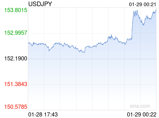 新浪外汇消息2026年01月29日,截至00时21分,外汇市场上美元兑日元汇率突破1美元兑换153.7300日元。涨幅为1.0119%