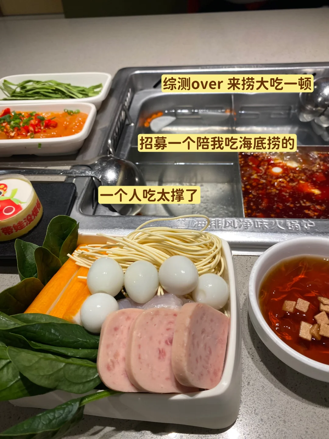 🍲紧张的综测结束一个人还去吃了海底捞,又幸福了..大学生69折就是香啊,一个人50连吃带拿还打包了,根本吃不完!