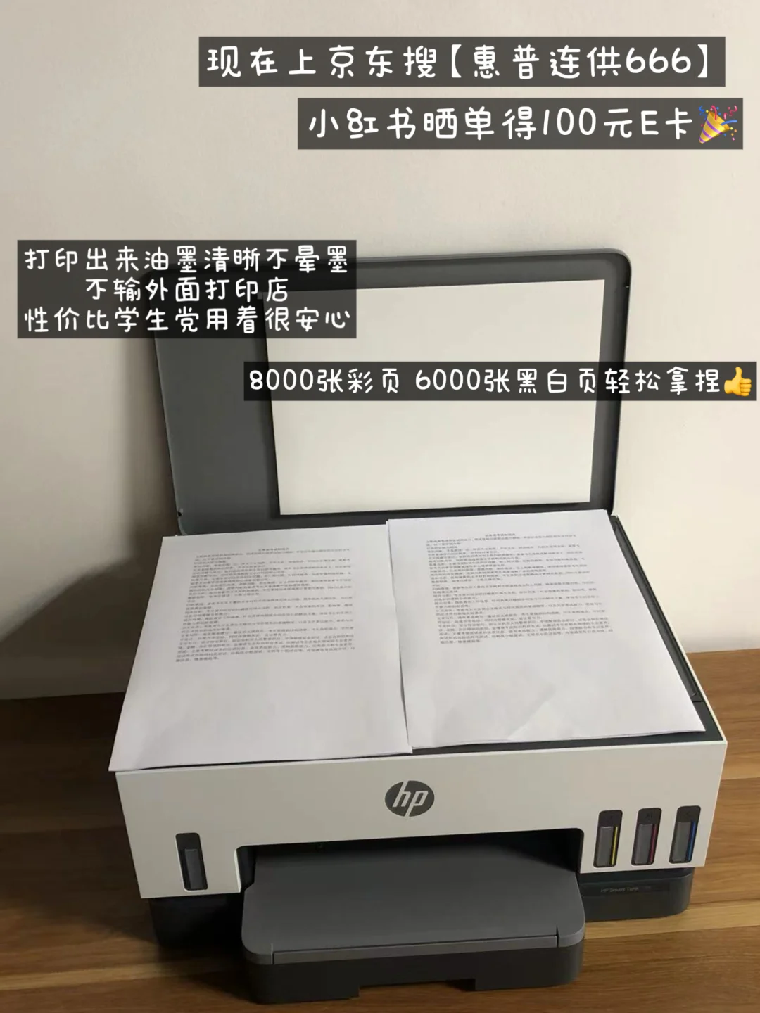 如果你也在寻找一款性价比高、功能全面的打印机,快去京东搜【惠普连供666】安排上吧!晒单得100元E卡o