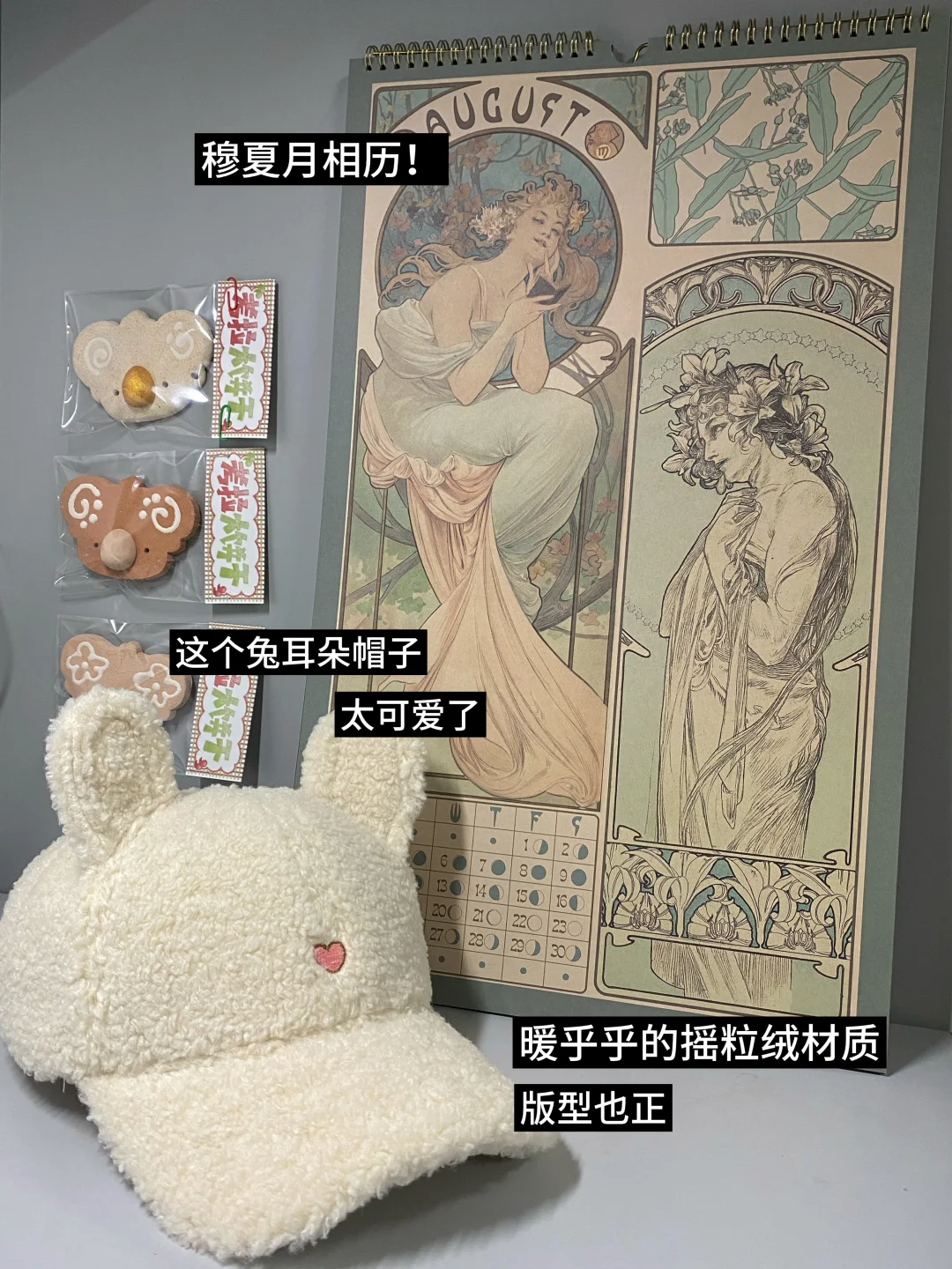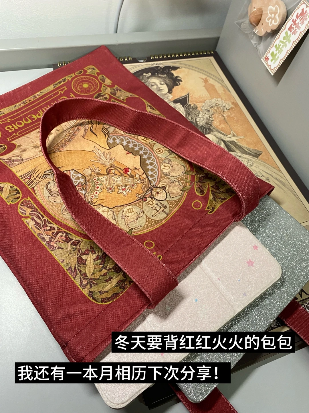 红色的萌物日记 ·用了8块的新人券狠狠拿下15块的小兔子帽子🐰帽子大户表示很满意!!北京吹大风头也不会冷了·夏天喜欢蓝色,冬天来点红棕色吧~kt鞋好像忘记发🐱 ·又整了一个简简单单的大包💼穆夏《黄道十二宫》帆布包艺术感拉满🎨是有一点绒布的感觉,摸起来很结实,有文艺感又适合日常通勤!漂亮物品使我心情愉快~