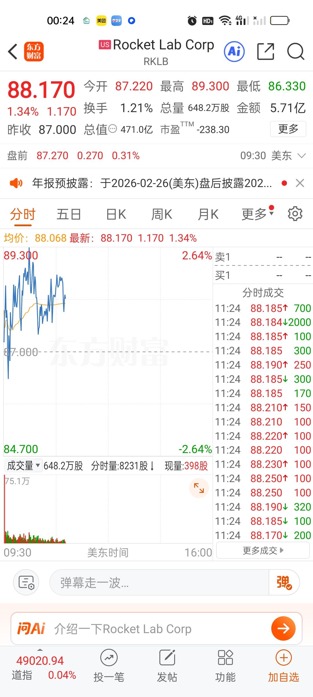 美股商业航天板块的个股虽然是红的,但是涨幅并不大。严格来说,昨天它们是大涨的,涨幅都在6.20%以上,但我们今天并没有跟,反而是跌的。明天不知道我们会不会补涨一下。