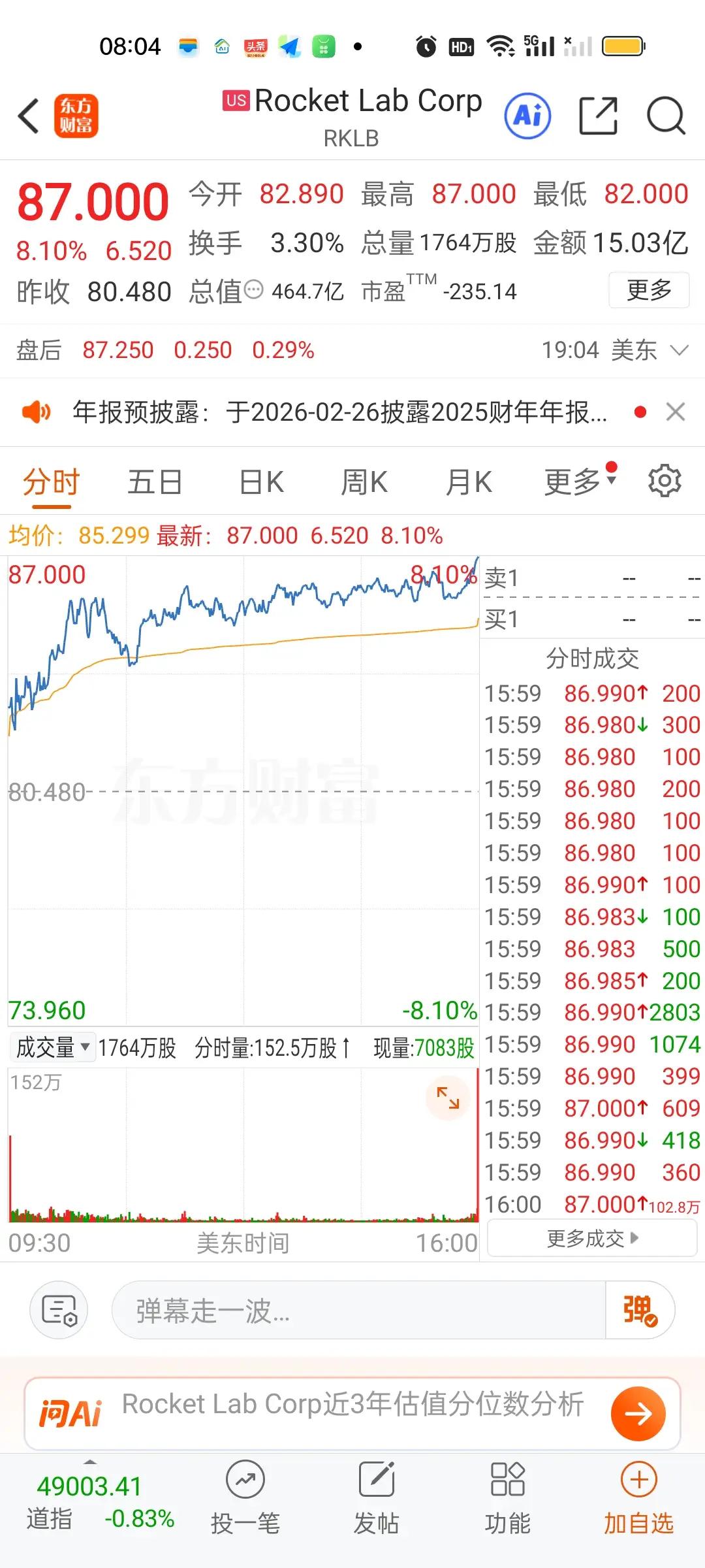 美股商业航天板块的个股虽然是红的,但是涨幅并不大。严格来说,昨天它们是大涨的,涨