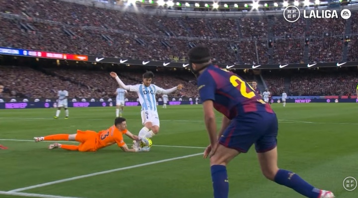 比赛第45分钟,皇家奥维耶多中场阿尔贝托·雷纳与巴萨门将霍安·加西亚接触后倒地,主裁判没有做出判罚。裁判技术委员会认定,守门员在任何情况下控制球时,对方球员都不得进行干扰,霍安·加西亚率先控制住了求,因此不会判罚点球。
