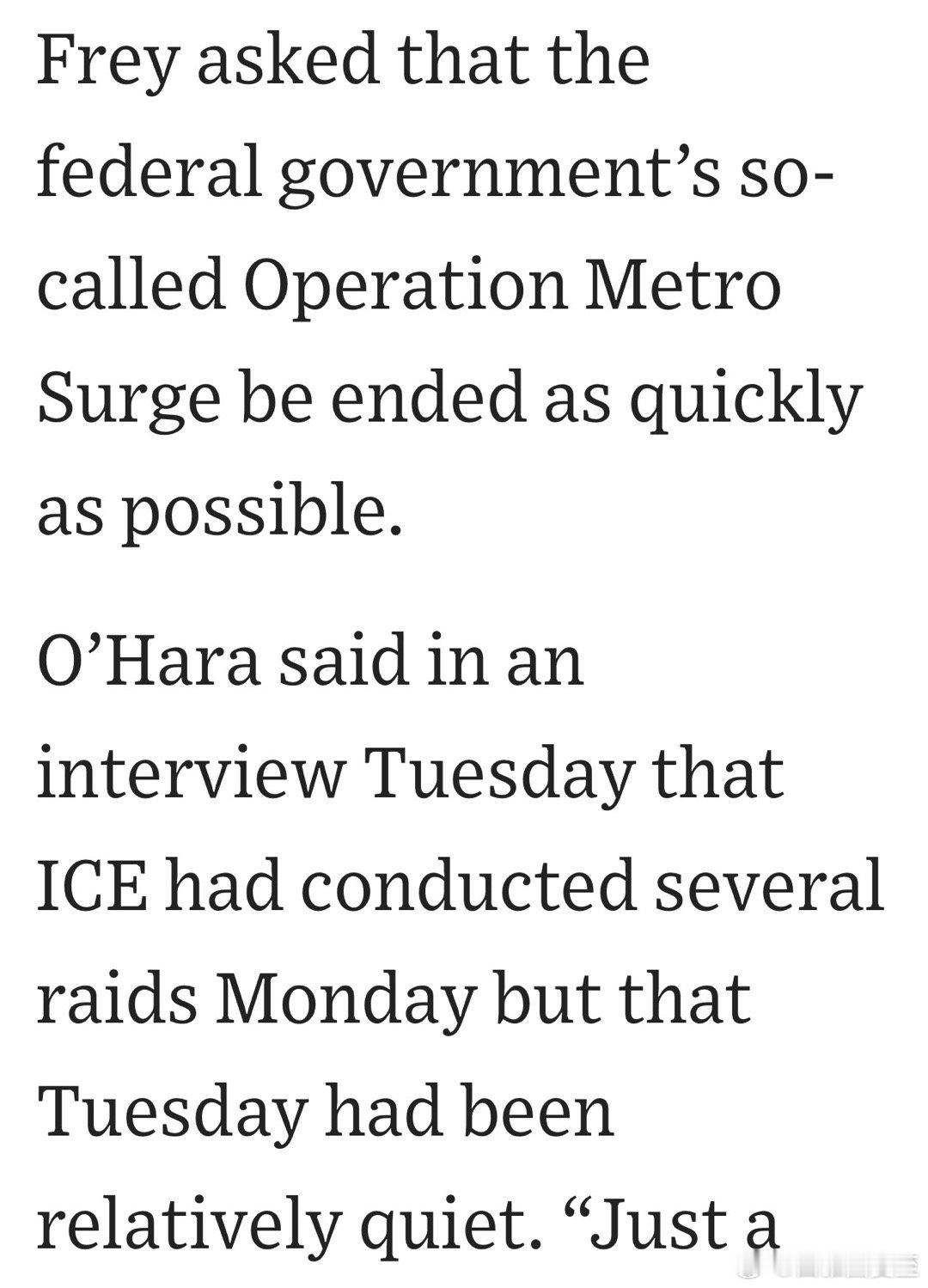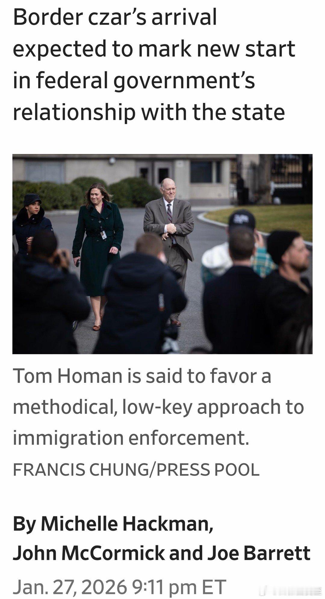 边境沙皇Homan向明州官员提出:把监狱里的无证移民交给联邦,就可以撤出部分移民执法人员明州州长:已经服过刑的,一直在交,还没审判的,不能交明尼阿波利斯市长:立即撤员、停止目前的大规模抓捕Homan需要向总统证明:不大规模抓人,也能实现“遣返一百万”的目标很困难,但明尼阿波利斯市警察局长与Homan谈话后,证实“抓捕和抗议都在降温”