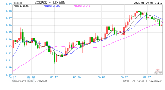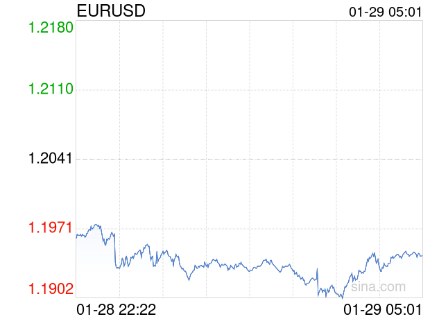 新浪外汇消息2026年01月29日,截至05时00分,外汇市场上欧元兑美元汇率跌破1欧元兑换1.1944美元。跌幅为-0.8056%