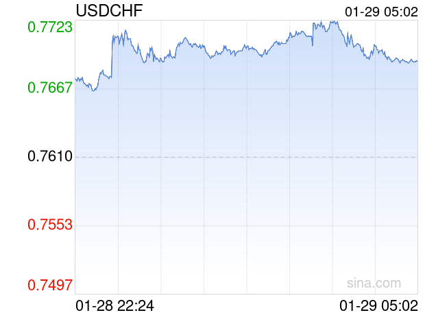 新浪外汇消息2026年01月29日,截至05时02分,外汇市场上美元兑瑞士法郎汇率突破1美元兑换0.7688瑞士法郎。涨幅为1.0250%