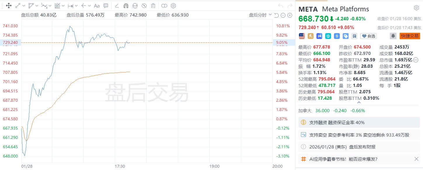格隆汇1月29日|META第四季度营收598.9亿美元,同比增长24%,预估584.2亿美元;第四季度广告收入581.4亿美元,同比增长24%,预估567.9亿美元;第四季度每股收益8.88美元,上年同期8.02美元;第四季度经营利润247.5亿美元,同比增长5.9%。Meta称全年资本支出将达1150亿美元至1350亿美元,超过分析师平均预期的1106亿美元。Meta预计第一季度销售额将达535亿美元至565亿美元,超过分析师平均预期的513亿美元。Meta盘后大涨超9%。