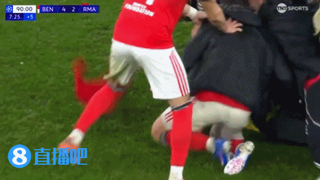 本场比赛第98分钟,门将特鲁宾破门为本菲卡取得关键的净胜球优势,穆里尼奥目睹“绝杀”后沿边线奔跑庆祝。