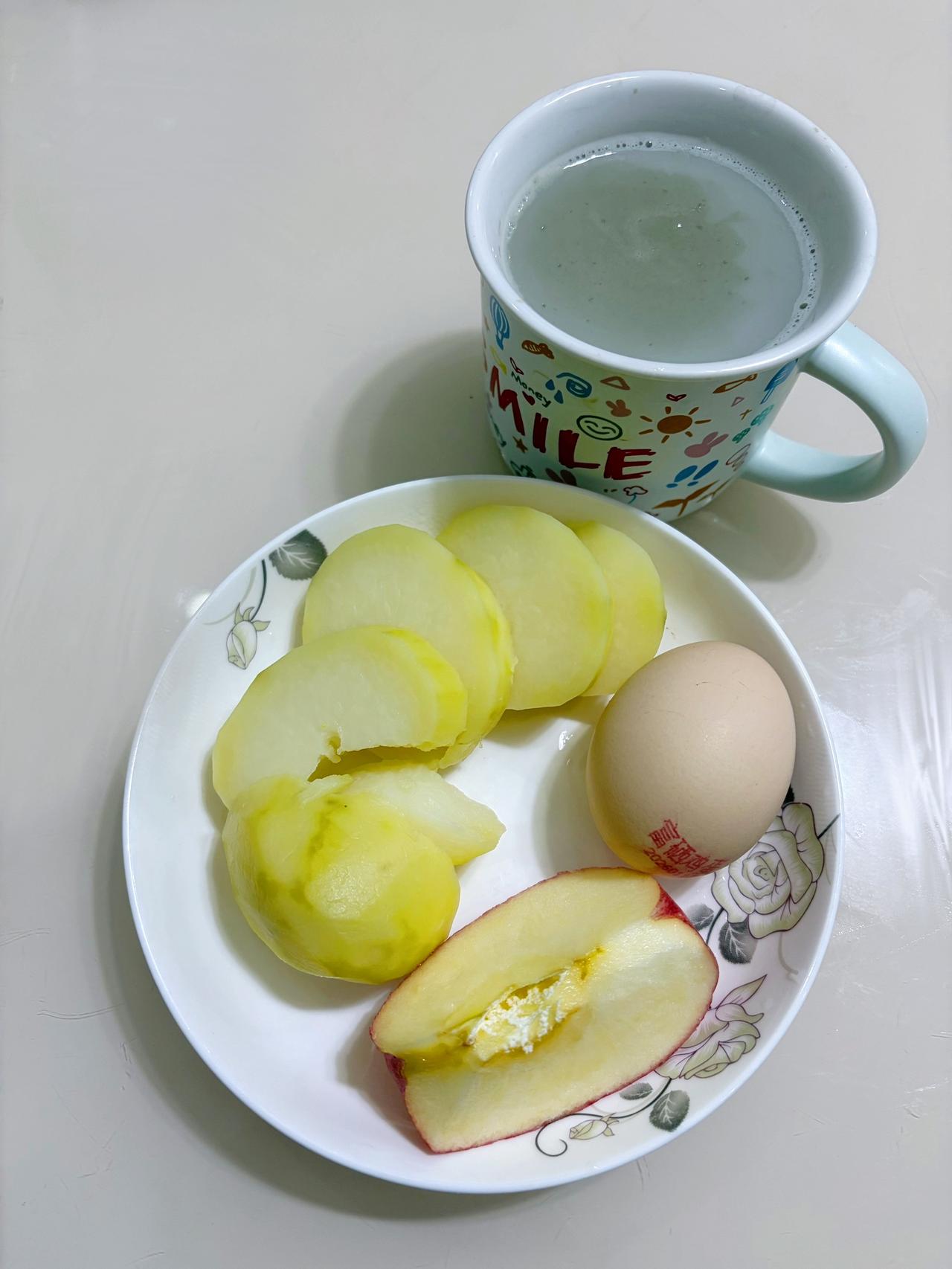 自律减脂健康餐 今日体重:104.7斤⬇️0.4斤 今日减脂早餐:黑豆浆+土豆+鸡蛋+苹果 体重管理 自律减脂健康餐