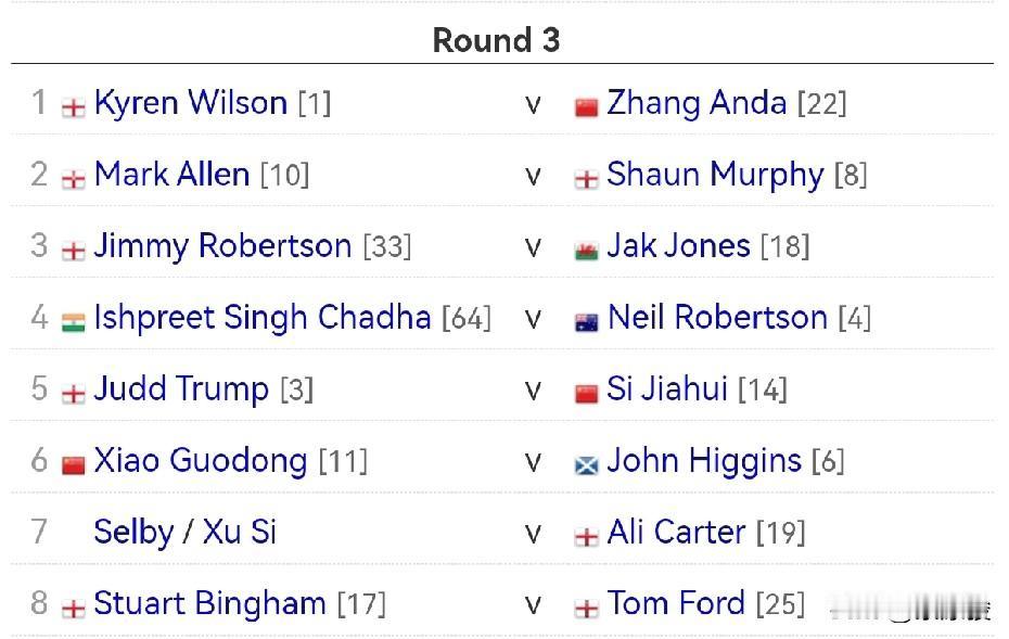 德国大师赛16强出炉,张安达、肖国栋、斯佳辉、徐思等4名中国球员入围。刚刚,徐思5-4爆冷逆转绝杀塞尔比。徐思决胜局超了16分,被塞尔比疯狂做斯诺克,差点崩溃。今天凌晨,赵心童3-5负于福德,火箭奥沙利文3-5负于卡特。 赵心童3-1领先被福德四连鞭,最终3-5告负,其中第8局,赵心童追到44-55,结果没有叫到最后一颗红球,之后白球摔袋,失去扳平机会。 徐思与塞尔比的比赛刚刚结束,塞尔比4-3率先拿到赛点,徐思第8局顽强扳平,将比赛拖入决胜局。 决胜局,徐思超了16分,按理说塞尔比可以认输了,可是塞尔比不投降,之后长时间疯狂做斯诺克,抹平徐思的超分优势。最终一次失误让塞尔比白忙活一场。 另一场比赛,火箭奥沙利文3-5负于卡特。火箭失误太多,一杆致胜能力减弱,好不容易上手,不是简单失误,就是走位不佳,看来火箭真的老了。 昨晚,周跃龙3-5负希金斯,周跃龙3-2领先,被希金斯连赢3局。 斯佳辉5-4绝杀吉尔伯特,肖国栋5-1大胜小司机,稍早的比赛,张安达5-2战胜霍金斯。 另外,马克·威廉姆斯3-5不敌吉米·罗伯逊,随着火箭出局,七五三杰只剩希金斯一人。特鲁姆普5-0零封瑞恩·戴。 至此,德国大师赛第二轮的比赛结束,4名中国球员晋级16强。 今晚明晨第三轮开打,中国球员的对阵如下: 17点: 张安达vs凯伦·威尔逊 22点: 徐思vs卡特 明天凌晨3点: 肖国栋vs希金斯 斯佳辉vs特鲁姆普。 虽然对手太强,但希望中国球员至少有一人晋级8强。