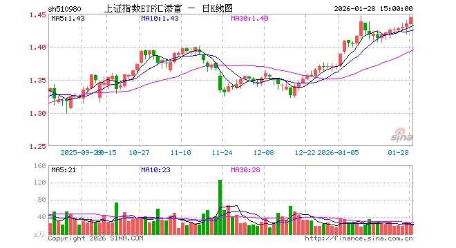 1月28日,上证指数ETF汇添富(510980)涨0.63%,成交额3362.53万元。当日份额减少600.00万份,最新份额为2.31亿份,近20个交易日份额减少6300.00万份。最新资产净值计算值为3.32亿元。