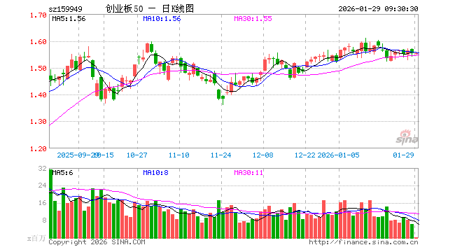 1月29日,创业板50ETF(159949)开盘跌0.19%,报1.550元。创业板50ETF(159949)重仓股方面,宁德时代开盘涨0.15%,中际旭创涨1.43%,新易盛涨1.77%,东方财富跌0.53%,阳光电源涨0.07%,胜宏科技涨0.23%,汇川技术涨0.04%,迈瑞医疗涨0.01%,天孚通信跌0.26%,亿纬锂能跌0.39%。
