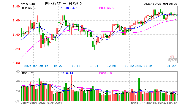 1月29日,创业板ETF南方(159948)开盘跌0.08%,报3.664元。创业板ETF南方(159948)重仓股方面,宁德时代开盘涨0.15%,中际旭创涨1.43%,新易盛涨1.77%,东方财富跌0.53%,阳光电源涨0.07%,胜宏科技涨0.23%,汇川技术涨0.04%,迈瑞医疗涨0.01%,温氏股份涨0.39%,天孚通信跌0.26%。