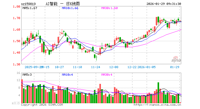 1月29日,人工智能ETF易方达(159819)开盘跌0.18%,报1.670元。人工智能ETF易方达(159819)重仓股方面,中际旭创开盘涨1.43%,新易盛涨1.77%,寒武纪跌0.05%,澜起科技涨1.35%,中科曙光跌0.01%,科大讯飞涨2.08%,海康威视涨0.00%,豪威集团跌0.61%,金山办公跌0.92%,浪潮信息跌1.03%。