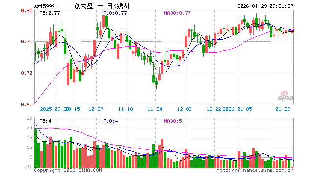 1月29日,创大盘ETF(159991)开盘跌0.13%,报0.763元。创大盘ETF(159991)重仓股方面,宁德时代开盘涨0.15%,中际旭创涨1.43%,新易盛涨1.77%,东方财富跌0.53%,阳光电源涨0.07%,胜宏科技涨0.23%,汇川技术涨0.04%,迈瑞医疗涨0.01%,天孚通信跌0.26%,亿纬锂能跌0.39%。