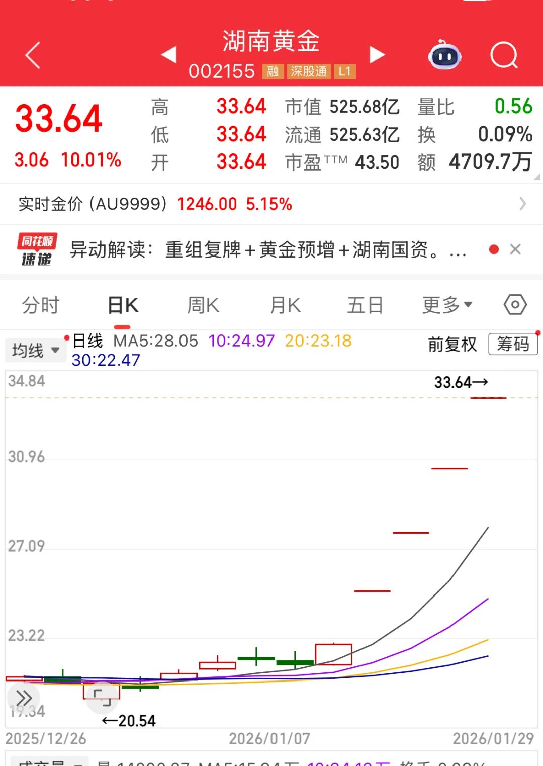 早盘,贵金属概念持续爆发,中国黄金5连板,湖南黄金4连板,晓程科技、湖南白银等多股高开。消息面上,国际黄金期货价格和现货价格29日再创新高,盘中突破每盎司5500美元。