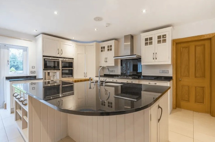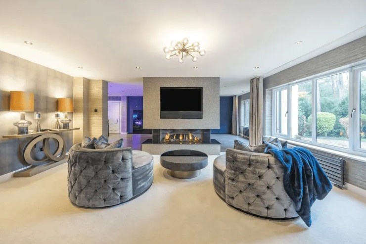 这栋豪宅位于英国,两层结构,居住面积8000平方英尺(折合743.22平方米),配有休闲娱乐副楼、室内游泳池、8间浴室,游戏室、酒吧、健身房、私人影院,可以说是非常奢华。