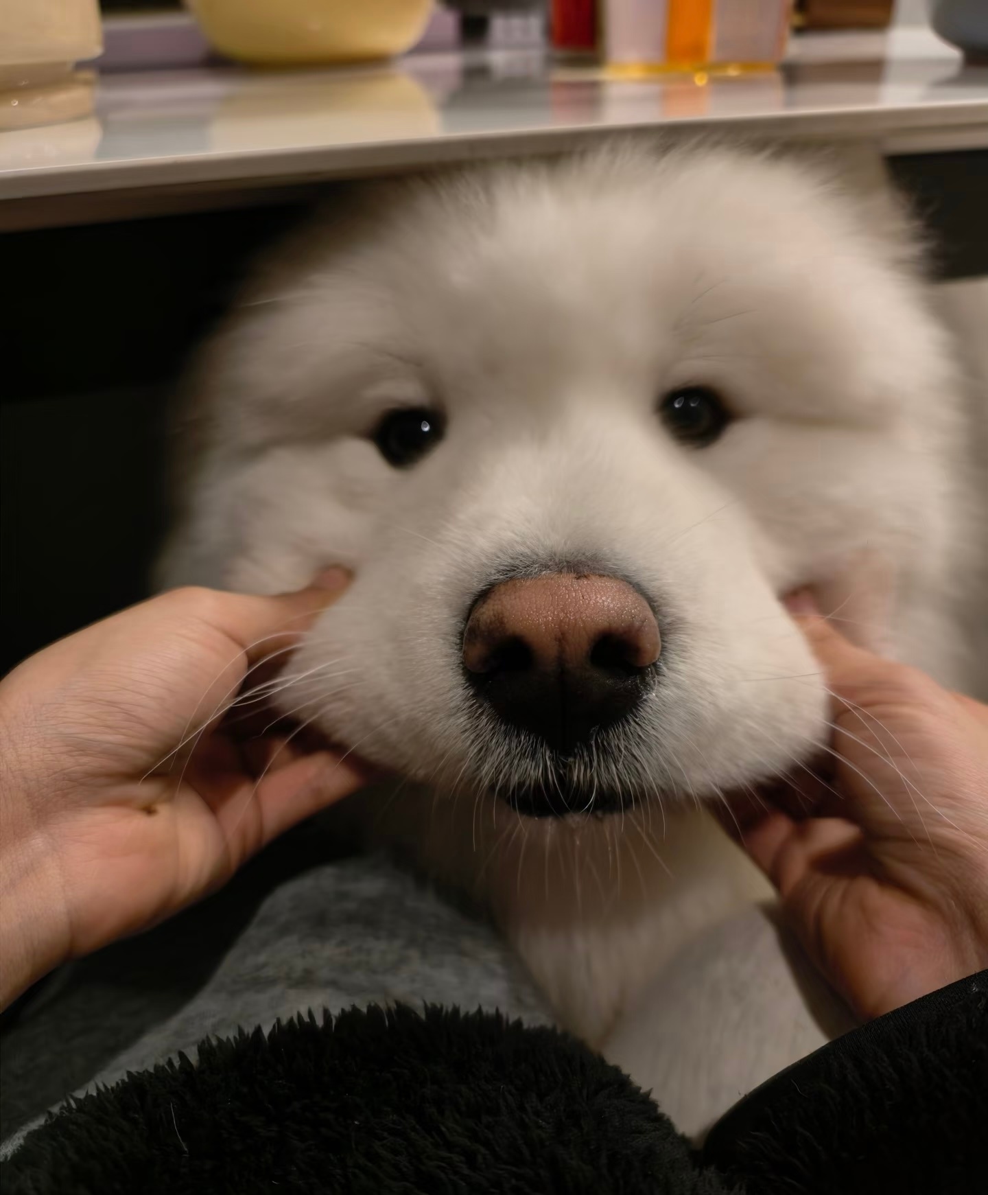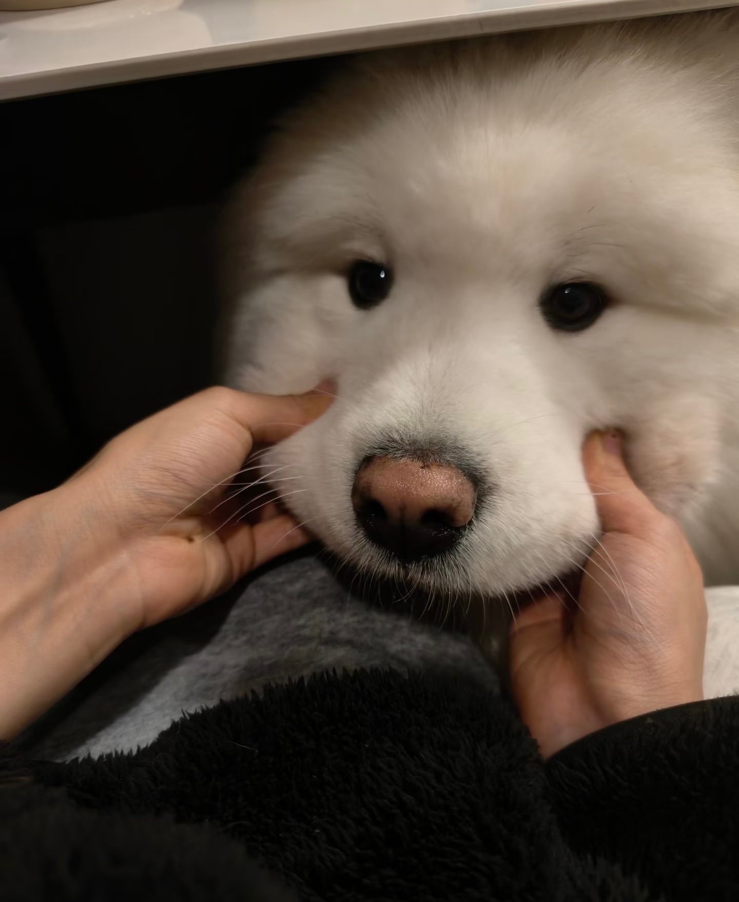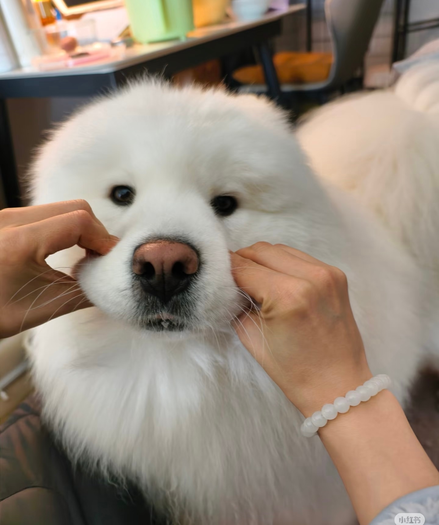 萨摩耶的嘴筒子真的很好捏