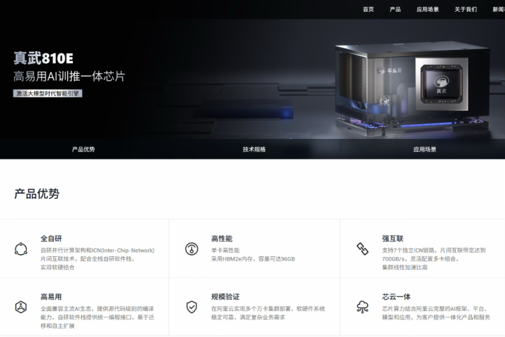 据平头哥官网介绍,“真武”PPU采用自研并行计算架构和片间互联技术,配合全栈自研软件栈,实现软硬件全自研。其内存为96GHBM2e,片间互联带宽达到700GB/s,可应用于AI训练、AI推理和自动驾驶。阿里巴巴已将“真武”PPU大规模用于千问大模型的训练和推理,并结合阿里云完整的AI软件栈进行深度优化,为客户提供一体化产品和服务。