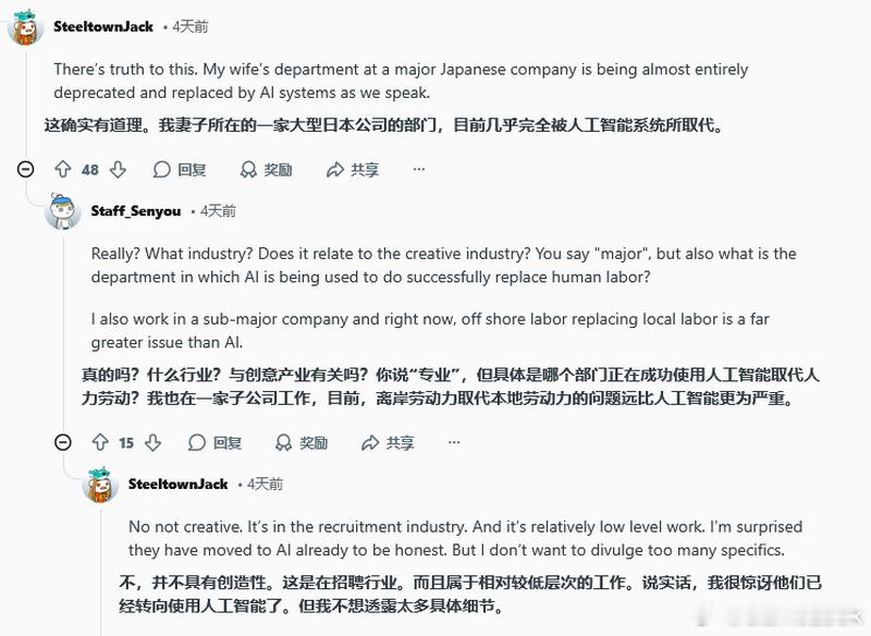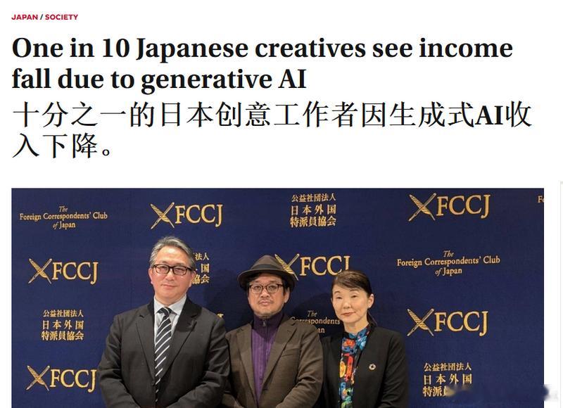 【AI冲击波:10%日本创意工作者收入减少!有人减少50%网页链接】据《日本时报》援引日本自由职业者联盟发布的调查数据显示,在收集的24991份材料中,插画师占54.2%、漫画家占15.0%、动画师占2.2%、作家占7.5%、视频作者占2.5%,动画师占2.2%。其中12%的受访者表示收入因生成式人工智能而下降。其中包括9.3%的人表示收入下降了10%至50%,以及2.7%的人表示收入降幅超过50%。而面对这一情况,88.6%的受访者表示对AI感到了威胁,其中65.3%的人感到“强烈”威胁。