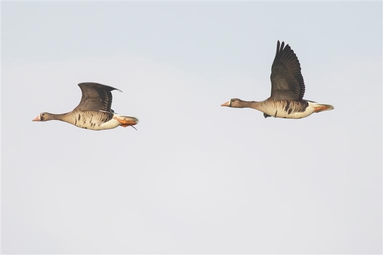 白额雁在东方黑脸琵鹭省级自然保护区飞翔。吕树天摄