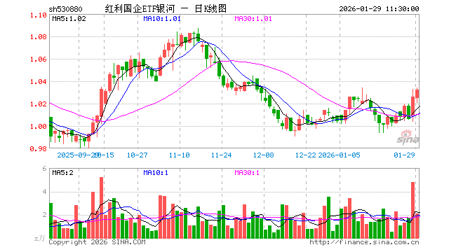 红利国企ETF银河(530880)业绩比较基准为上证国有企业红利指数收益率,管理人为银河基金管理有限公司,基金经理为黄栋,成立(2024-10-30)以来回报为5.08%,近一个月回报为1.29%。