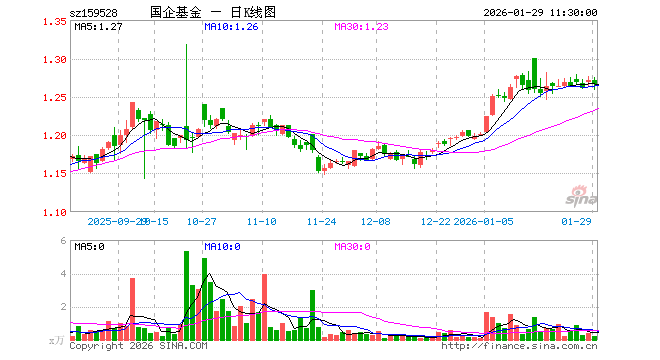 1月29日,截止午间收盘,国企改革ETF富国(159528)跌0.39%,报1.266元,成交额29.26万元。国企改革ETF富国(159528)重仓股方面,紫金矿业截止午盘涨3.00%,北方华创跌4.28%,国泰海通跌1.38%,兴业银行跌0.70%,中信证券跌0.64%,招商银行涨0.16%,长江电力跌0.82%,五粮液涨1.56%,京东方A跌2.21%,中国船舶跌1.99%。
