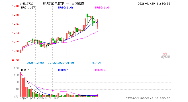 家居家电ETF(515730)业绩比较基准为中证家居家电指数收益率,管理人为永赢基金管理有限公司,基金经理为储可凡,成立(2025-11-14)以来回报为5.40%,近一个月回报为3.04%。