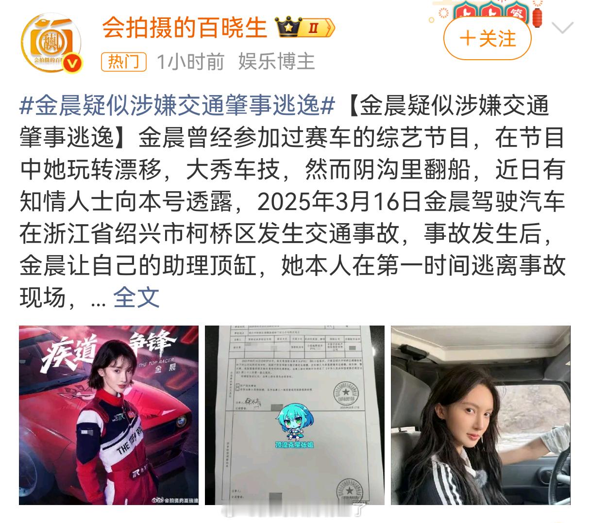 曝金晨肇事逃逸卧槽,狗仔曝金晨肇事逃逸,还说事发后让助理顶包,这得出来回应一下吧