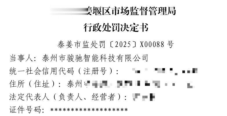 1月29日,记者从国家企业信用信息公示系统网站(江苏)了解到,泰州市骏驰智能科技有限公司因涉嫌电子商务经营者违反规定搭售商品、服务的行为被姜堰区市场监管局处罚。