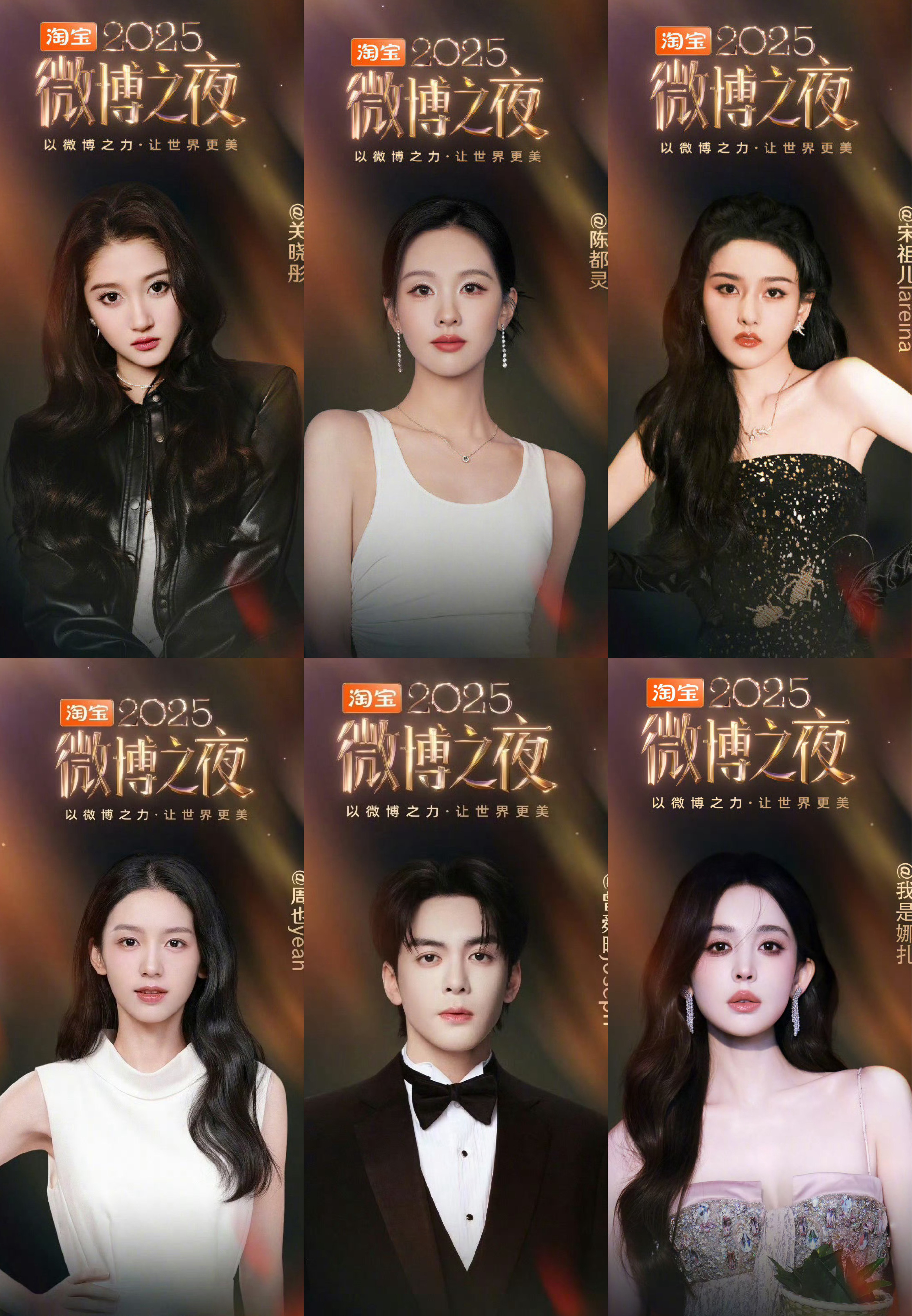微博之夜新一轮官宣阵容✨张凌赫 丁禹兮 宋威龙 关晓彤 陈都灵 宋祖儿王安宇 敖
