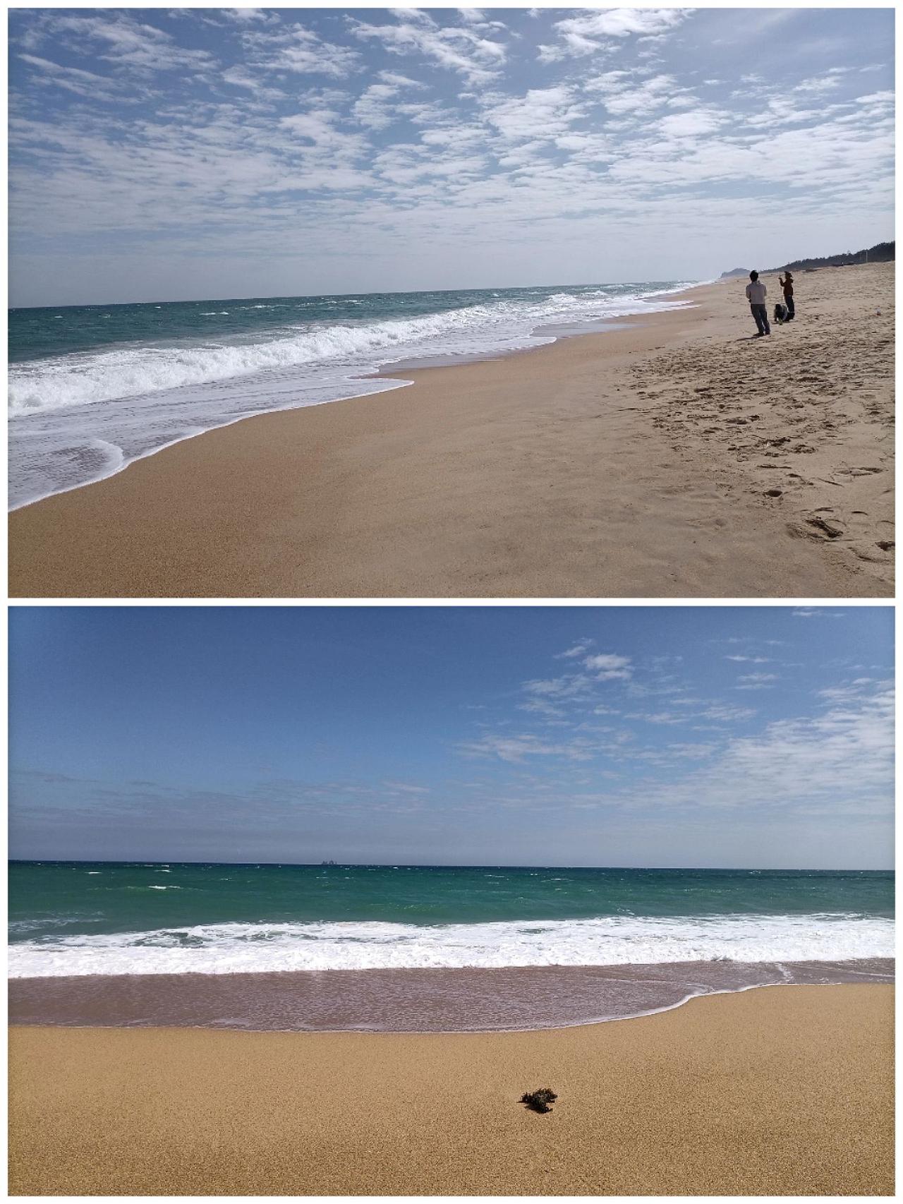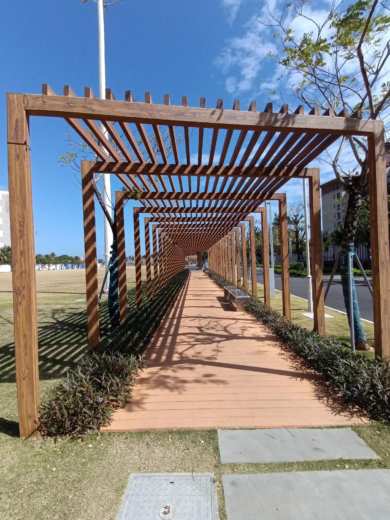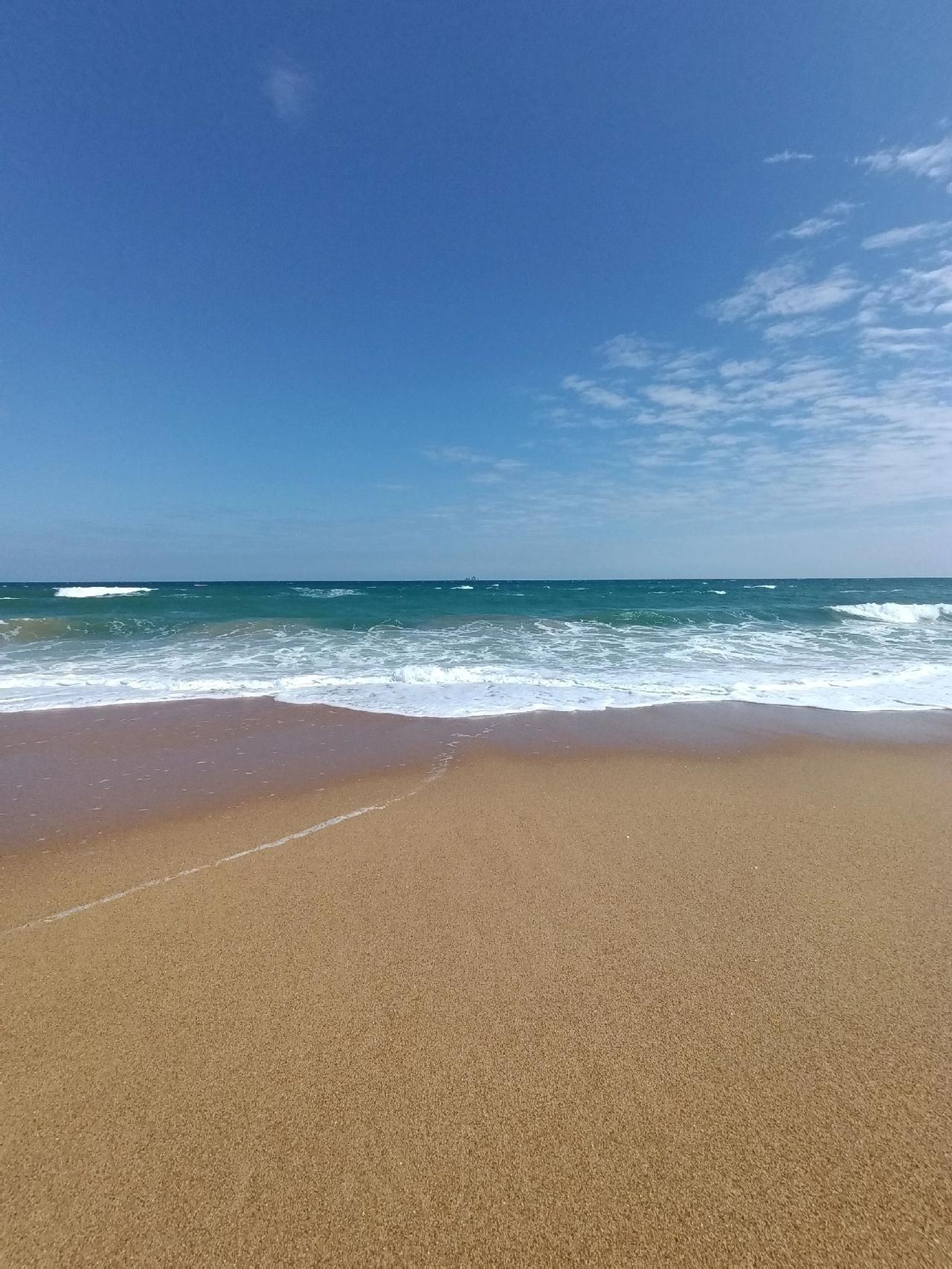 有时候奇遇就在不经意间。打车去陵水县黎安海归小镇,原以为是美丽的欧式小镇,司机却提前停在了海滨公园(图1上),蓝天上的白云非常奇特(图1下)。沿着公园时光隧道似的长廊(图2),往前走,踏过草地,奇迹发生了,一个非常原始的海湾沙滩展现在我们面前(图3),野性十足,美丽异常,估计百千年前也是这样子了。 这个海湾和沙滩没有任何人工雕琢的痕迹;沙滩细腻柔软,白浪翻卷,异常凶猛(图4-8)。伴随着阵阵海浪声,从很远处就如潮水般向沙滩疯狂扑来;那种野性,美得无法形容,那种被大海勾魂般的感觉又重新袭来,太治愈了。要离开了,回望椰林小道远处的大海(图9),仍然瑰丽惊人。随后又打卡了南门岭公园(图10)。 陵水 一起看海 治愈系风景 海浪