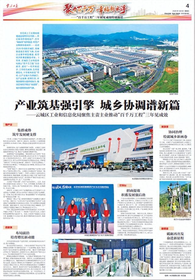 全区规上工业增加值增速连续两年全市第一,百亿级项目落地投产,空中“蜘蛛网”悄然隐退,特色产业集群加速成形……走进2026年初的云城区,金属智造园区钢花飞溅、石材企业数字转型提速、低空经济新赛道蓄势待发。3年来,云城区工业和信息化局以“百千万工程”为总抓手,紧扣“一年开局起步、三年初见成效、五年显著变化、十年根本改变”目标,以产业振兴为突破口,在产业发展、招商引资、环境改善等方面持续发力,推动区域经济跑出“加速度”,城乡面貌焕发新气象。