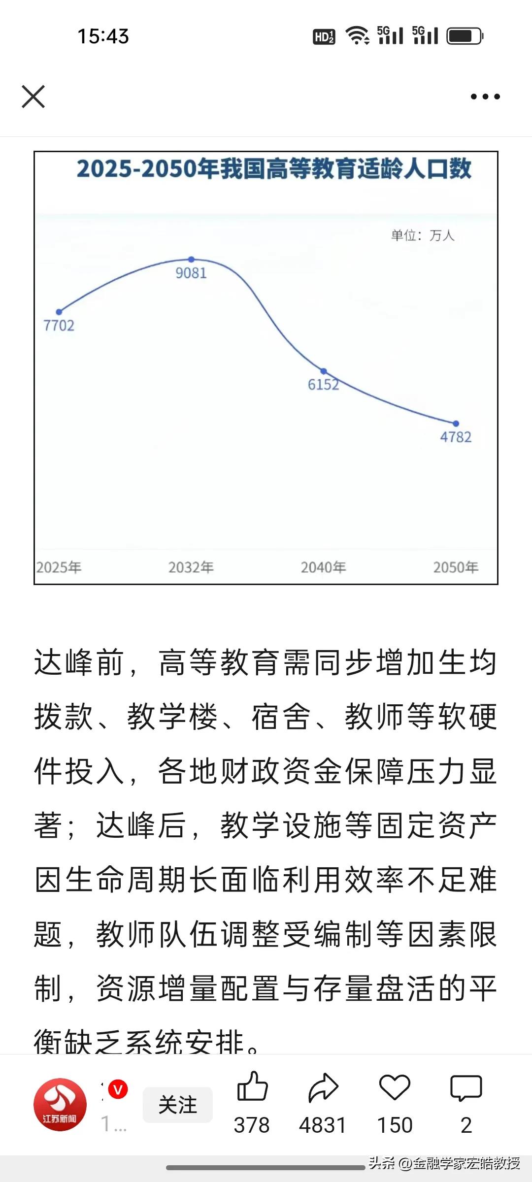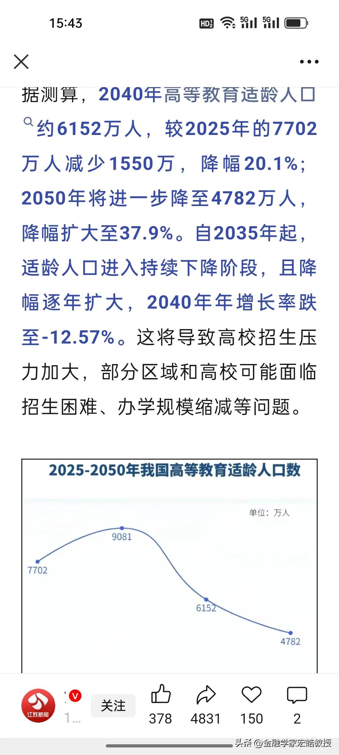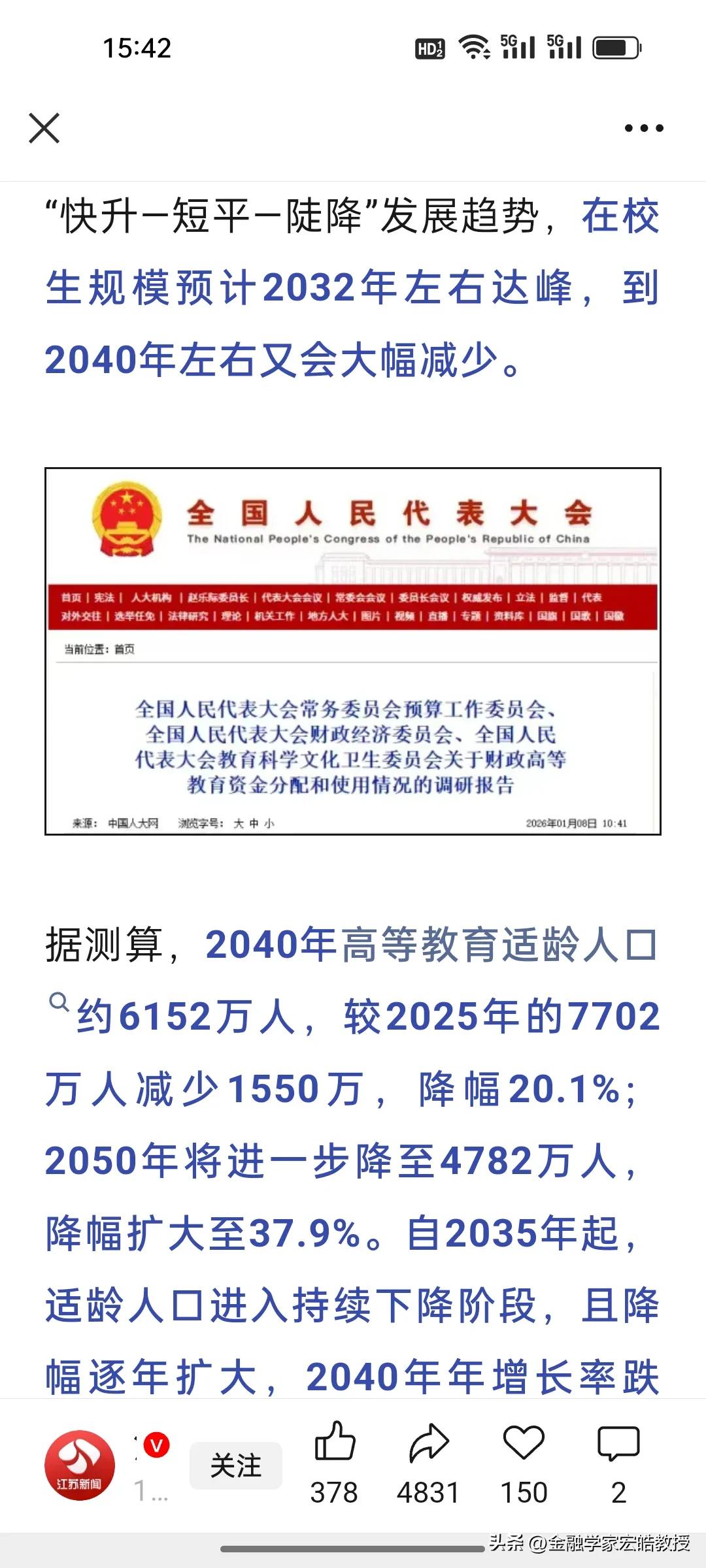 2035年后真能人人上大学? 刚刚,根据《江苏新闻《 》报道,全国人大调研报告给出关键信号:2035年起,高等教育适龄人口将持续锐减,2050年较现在减少近四成!这意味着大量高校将陷入招生困局,尤其是缺乏就业竞争力的民办院校,面临的冲击可能最直接。 很多人以为“人人上大学”是福利,本科成了基本盘,却忽略了背后的洗牌逻辑——未来拼的不是“有没有学上”,而是“能不能上有用的学”。高校若不转型,学生若不聚焦就业,即便拿到文凭,也可能在新的竞争中陷入被动。 所谓的全民上大学,不过是低质院校的无奈兜底,含金量早已大打折扣。选对赛道远比拥有学历更重要,这才是教育最真实的底层逻辑!
