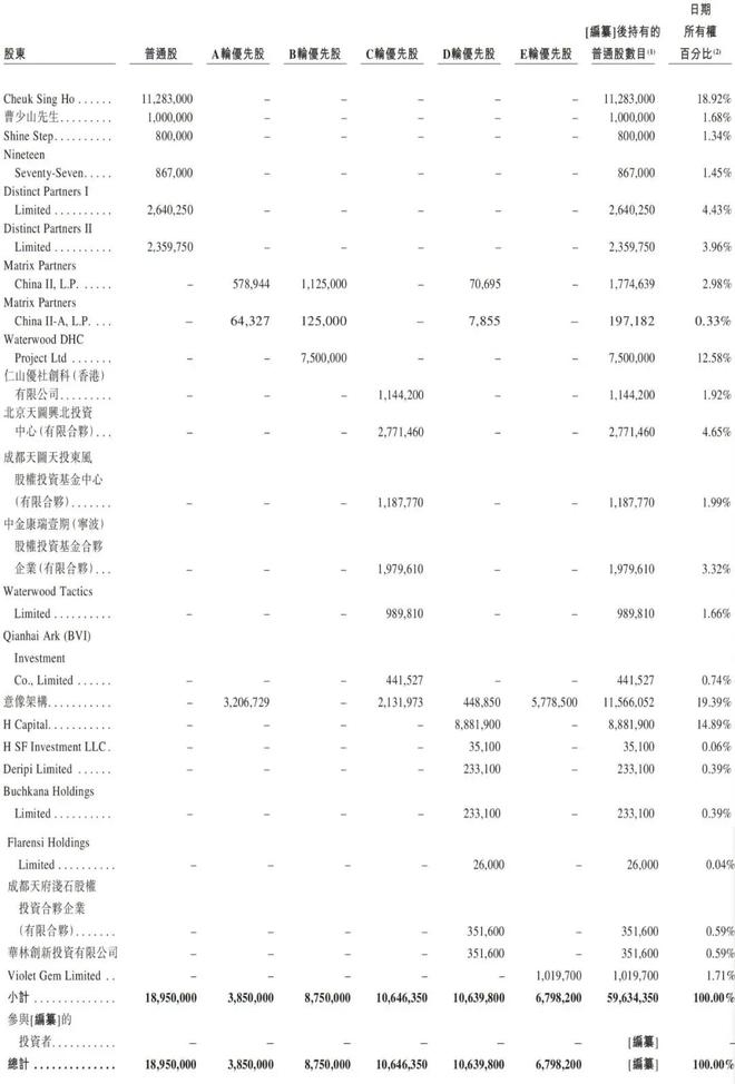 IPO后,CheukSingHo持股为17.52%,曹少山持股为1.55%,NineteenSeventy-Seven持股为1.35%,DistinctPartnersILimited持股为4.1%,DistinctPartnersIILimited持股为3.67%;