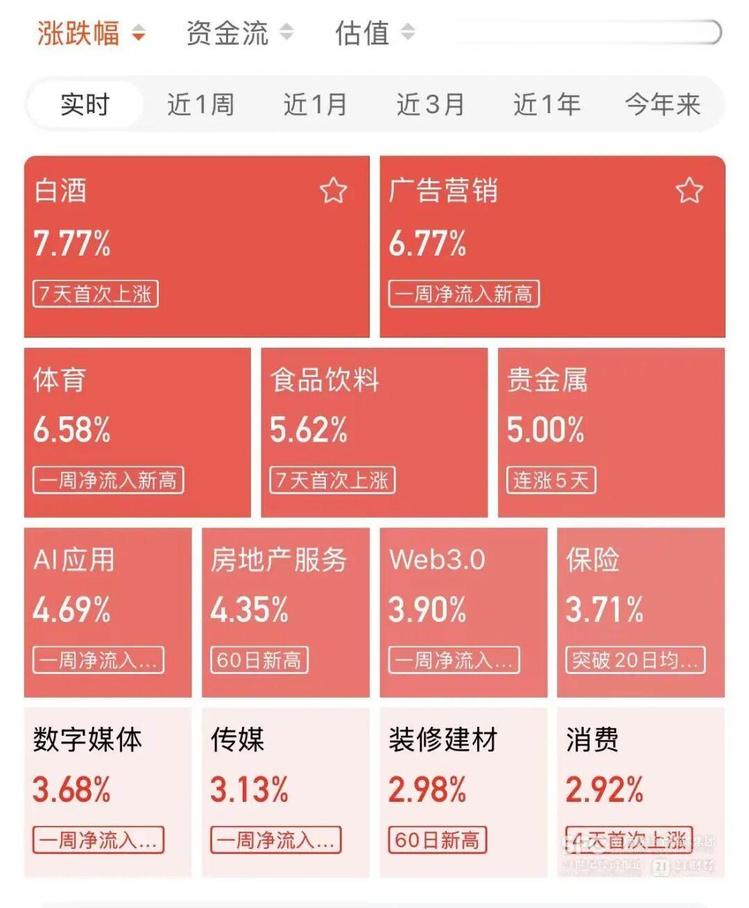 (白酒板块资金流入全市场领跑)