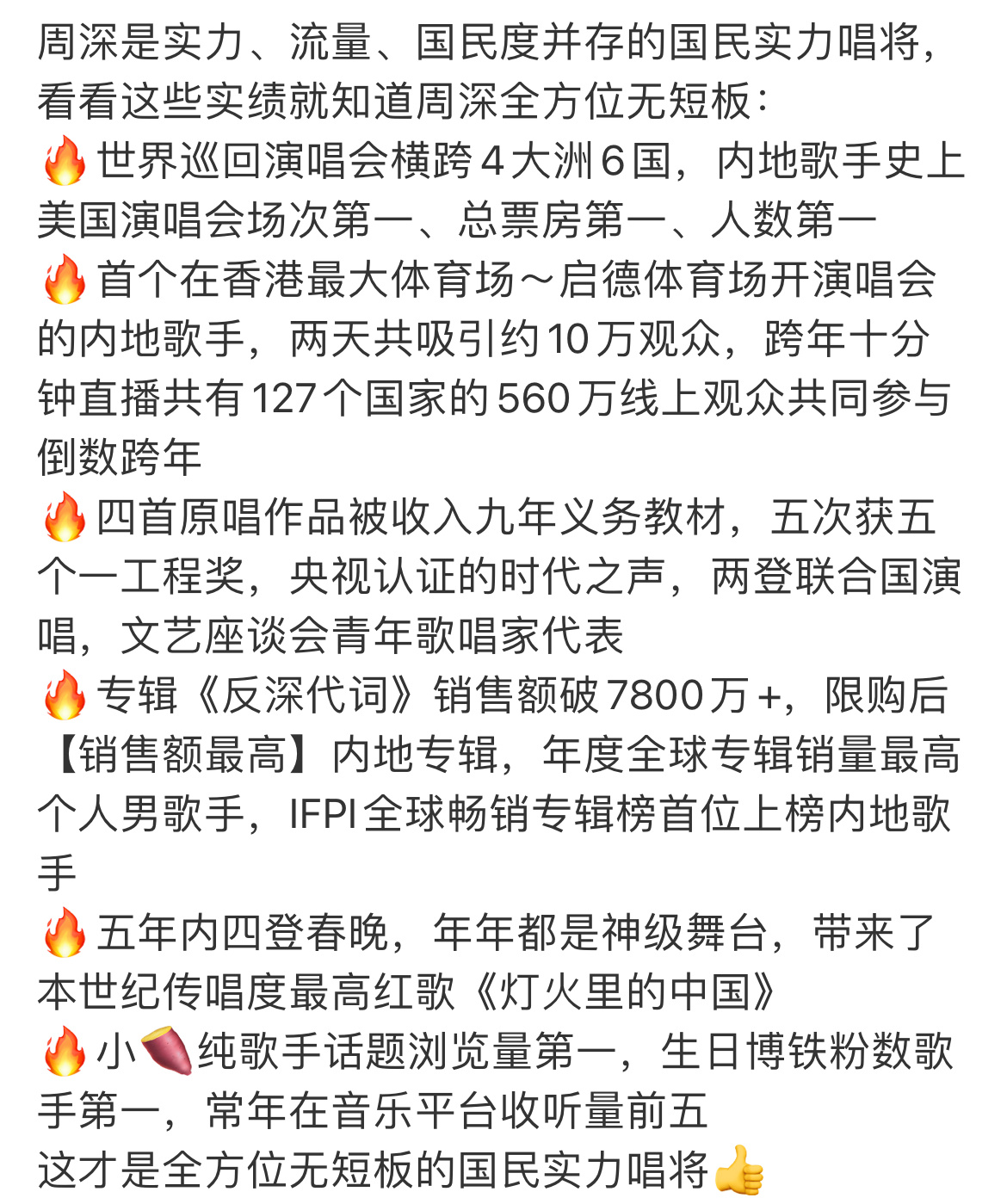 周深微博之夜六连胜都拿到票,从入围到最后一轮场场全胜,无合作纯手搓,各大榜单都有他,活粉真多
